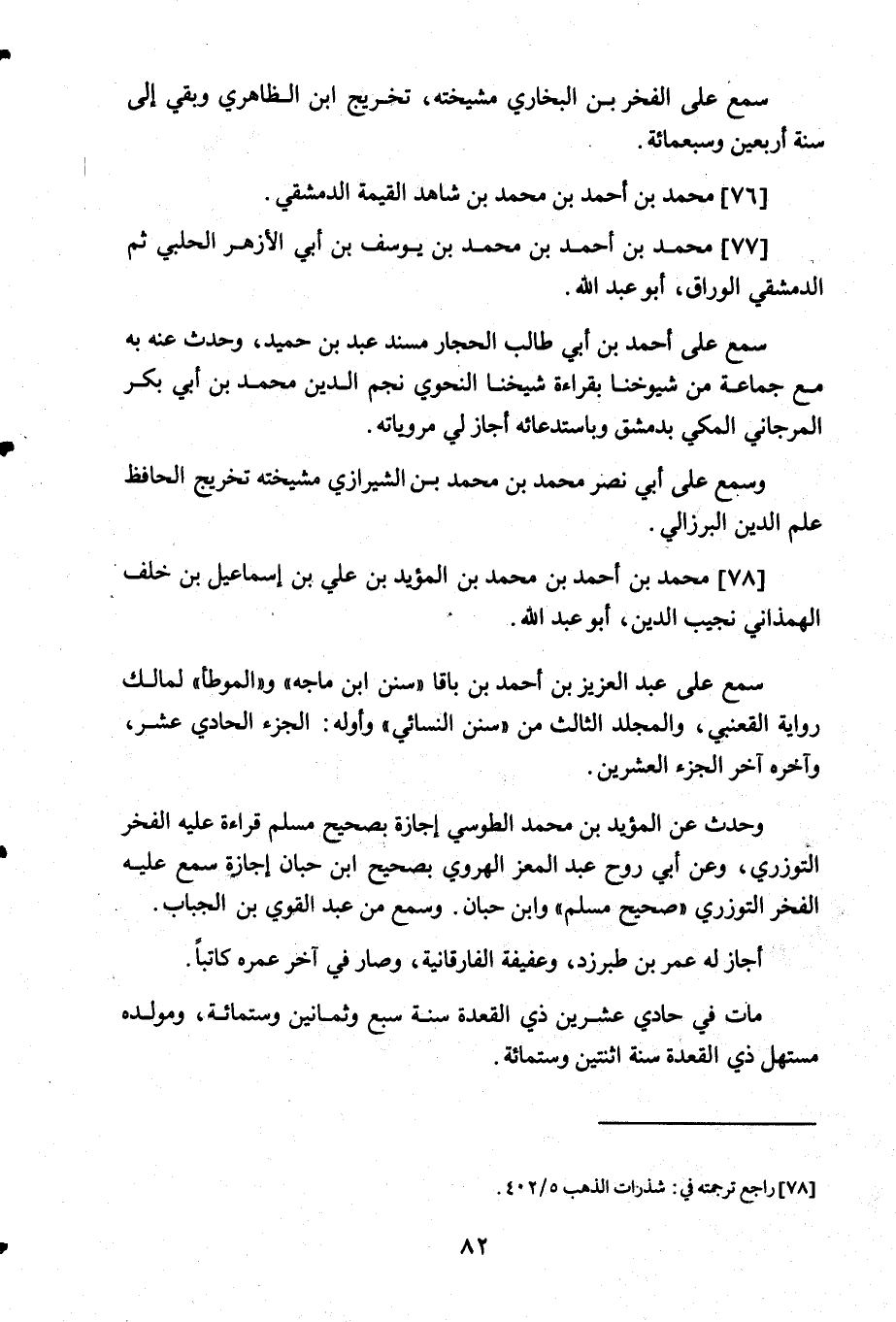 78- محمد بن أحمد بن محمد بن المؤيد بن علي بن اسماعيل بن خلف الهمذاني نجيب الدين أبو عبد الله.