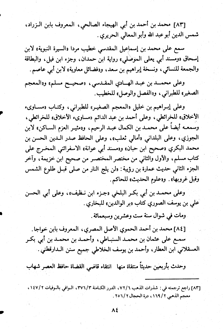 83- محمد بن أحمد بن أبي الهيجاء الصالحي المعروف بابن الزراد شمس الدين أبو عبد الله وأبو المعالي الحريري.