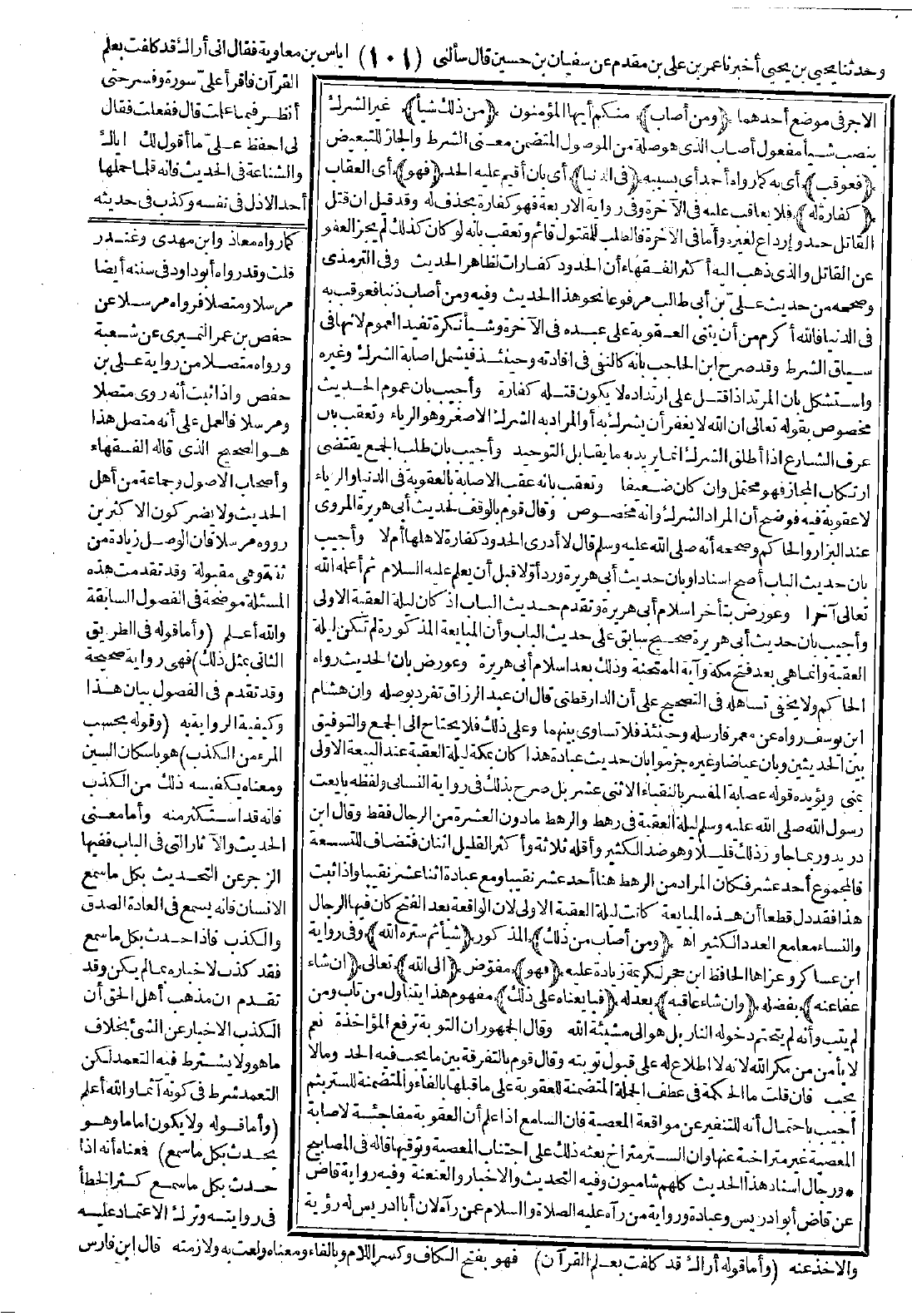 وشيئًا نكرة تفيد العموم لأنها في سياق الشرط، وقد صرح ابن الحاجب بأنه كالنفي في إفادته، وحينئذ فيشمل إصابة الشرك وغيره، واستشكل بأن المرتد إذا قتل على ارتداده لا يكون قتله كفّارة.