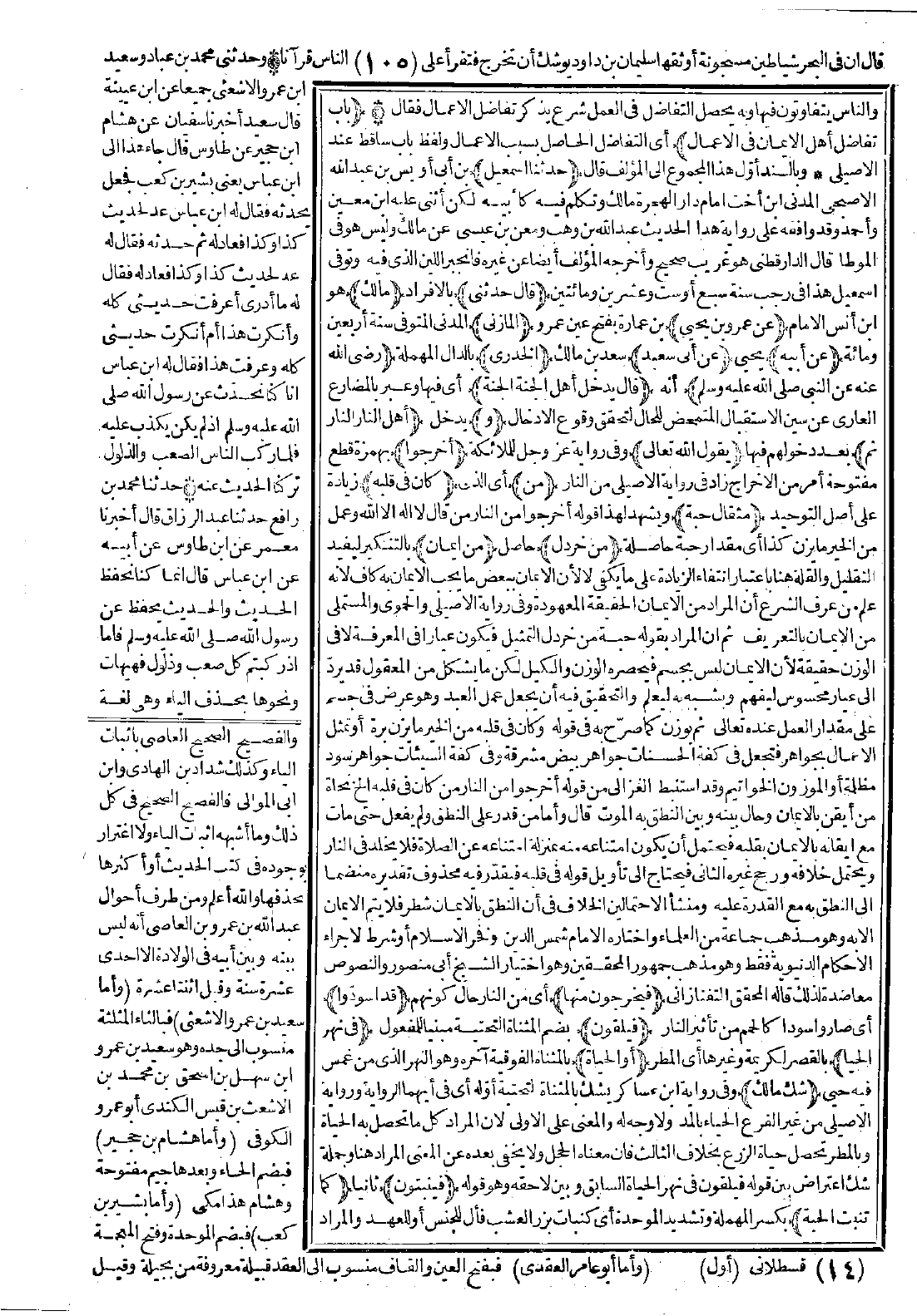 الإيمان ببعض ما يجب الإيمان به كافٍ لأنه علم من عرف الشرع أن المراد من الإيمان الحقيقة المعهودة، وفي رواية الأصيلي والحموي والمستملي من الإيمان بالتعريف. ثم إن المراد بقوله حبة من خردل التمثيل، فيكون عيارًا في المعرفة لا في الوزن حقيقة، لأن الإيمان ليس بجسم، فيحصره الوزن والكيل، لكن ما يشكل من المعقول قد يردّ إلى عيار محسوس، ليفهم ويشبه به ليعلم، والتحقيق فيه أن يجعل عمل العبد وهو عرض في جسم على مقدار العمل عنده تعالى، ثم يوزن كما صرّح به في قوله: وكان في قلبه من الخير ما يزن برة، أو تمثل الأعمال بجواهر فتجعل في كفة الحسنات جواهر بيض مشرقة، وفي كفة السيئات جواهر سود مظلمة، أو الموزون الخواتيم. وقد استنبط الغزالي من قوله أخرجوا من النار من كان في قلبه الخ. نجاة من أيقن بالإيمان، وحال بينه وبين النطق به الموت، فقال: وأما من قدر على النطق ولم يفعل حتى مات مع إيقانه بالإيمان بقلبه، فيحتمل أن يكون امتناعه منه بمنزلة امتناعه عن الصلاة، فلا يخلد في النار. ويحتمل خلافه، ورجح غيره الثاني، فيحتاج إلى تأويل قوله في قلبه، فيقدّر فيه محذوف تقديره منضمًّا إلى النطق به مع القدرة عليه، ومنشأ الاحتمالين الخلاف في أن النطق بالإيمان شطر فلا يتم الإيمان إلا به، وهو مذهب جماعة من العلماء، واختاره الإمام شمس الذين وفخر الإسلام، أو شرط لإجراء الأحكام الدنيوية فقط، وهو مذهب جمهور المحققين، وهو اختيار الشيخ أبي منصور، والنصوص معاضدة لذلك قاله المحقق التفتازاني.