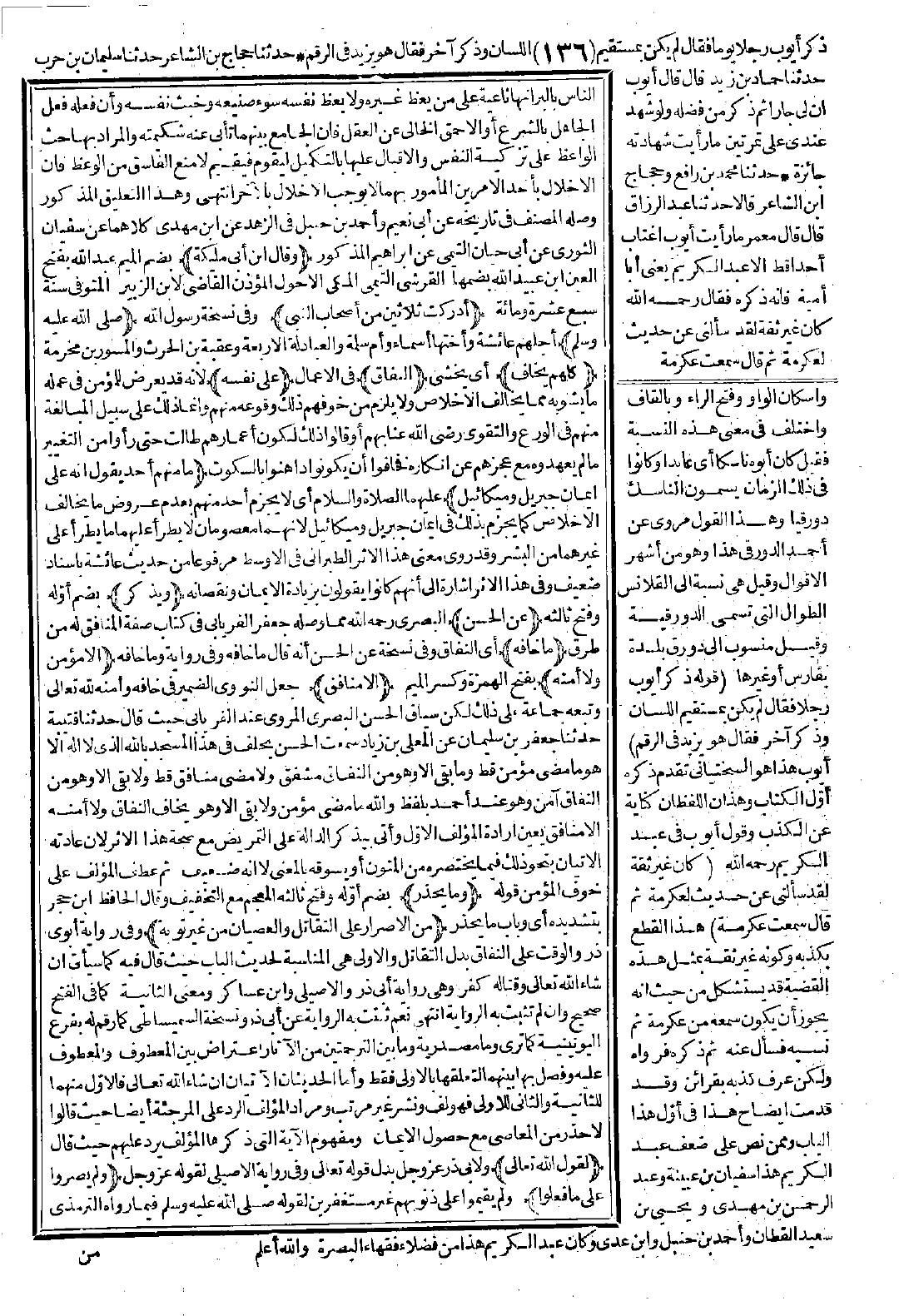 (وقال ابن أبي مليكة) بضم الميم عبد الله بفتح العين ابن عبيد الله بضمها القرشي التيمي المكي الأحول المؤذن القاضي لابن الزبير المتوفى سنة سبع عشرة ومائة (أدركت ثلاثين من أصحاب النبي) وفي نسخة رسول الله (-صَلَّى اللَّهُ عَلَيْهِ وَسَلَّمَ-) أجلهم عائشة وأختها أسماء وأم سلمة والعبادلة الأربعة، وعقبة بن الحرث والمسور بن مخرمة (كلهم يخاف) أي يخشى (النفاق) في الأعمال (على نفسه) لأنه قد عرض للمؤمن في عمله ما يشوبه مما يخالف الإخلاص ولا يلزم من خوفهم ذلك وقوعه منهم، وإنما ذلك على سبيل المبالغة منهم في الورع والتقوى رضي الله عنّا بهم، أو قالوا ذلك لكون أعمارهم طالت حتى رأوا من التغيير ما لم يعهدوه مع عجزهم عن إنكاره فخافوا أن يكونوا داهنوا بالسكوت (ما