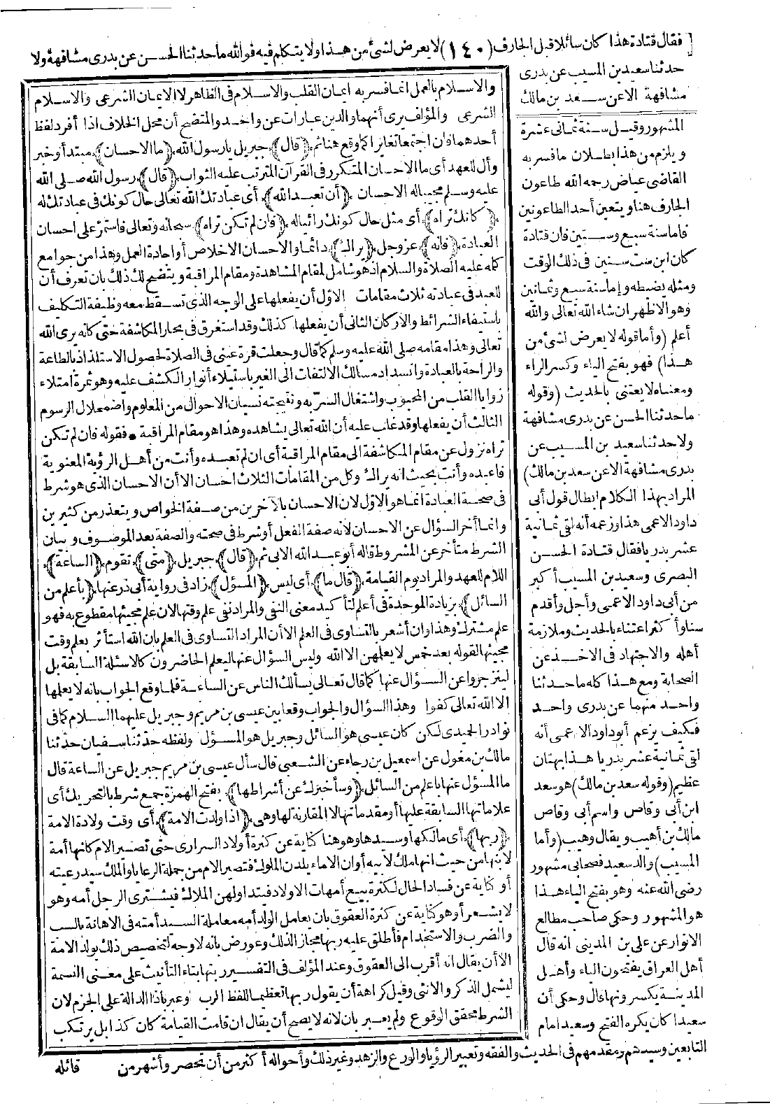 والإسلام بالعمل إنما فسر به إيمان القلب والإسلام في الظاهر لا الإيمان الشرعي والإسلام الشرعى، والمؤلف يرى أنهما والدين عبارات عن واحد، والمتضح أن محل الخلاف إذا أفرد لفظ أحدهما فإن اجتمعا تغايرا كما وقع هنا.