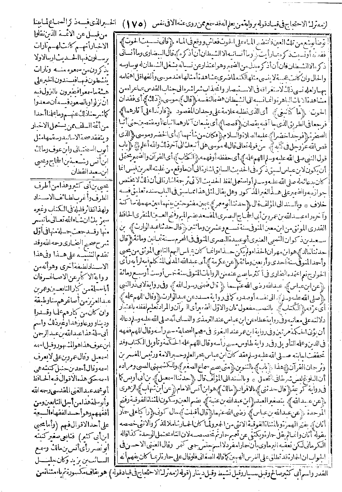 الموثق من ابن معين، المتوفى سنة تسع وعشرين ومائتين (قال: حدّثنا عبد الوارث) بن سعيد بن ذكوان التميمي العنبري أبو عبيدة البصرى، المتوفى فى المحرم سنة ثمانين ومائة. (قال حدّثنا خالد) هو ابن مهران الحذاء ولم يكن حذاء، وإنما كان يجلس إليهم التابعي الموثق من يحيى وأحمد، المتوفى سنة إحدى وأربعين ومائة (عن عكرمة) أبي عبد الله المدني المتكلم فيه لرأيه رأي الخوارج، نعم اعتمده البخاري في أكثر ما يصح عنه من الروايات، المتوفى سنة خمس أو ست أو سبع ومائة (عن ابن عباس) عبد الله رضي الله عنهما (قال):