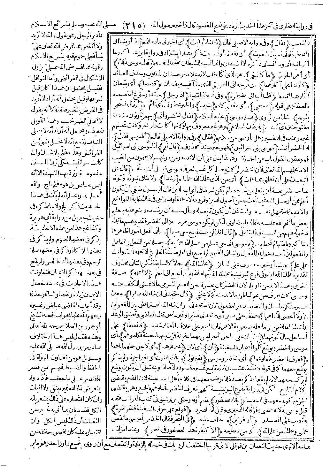 فمرت بهما سفينة فكلموهم) أي موسى والخضر ويوشع كلموا أصحاب السفينة (أن) أي لأن (يحملوهما) أي لأجل حملهم إياهما (فعرف الخضر فحملوهما) أي الخضر وموسى (بغير نول) بفتح النون أي بغير أُجرة ولم يذكر يوشع معهما كما في قوله، فانطلقا يمشيان لأنه تابع غير مقصود بالأصالة، ويحتمل أن يكون يوشع لم يركب معهما لأنه لم يقع له ذكر بعد ذلك وضمه معهما في كلام أهل السفينة لأن المقام يقتضي كلام التابع، لكن في رواية بفرع اليونينية كهي فعرف الخضر فحملوهم بالجمع وهو يقتضي الجزم بركوبه معهما في السفينة (فجاء عصفور) بضم أوّله، وحكى ابن رشيق في كتاب الغرائب فتحه قيل وسمي به لأنه عصى وفرّ قاله الدميري، وقيل إنه الصرد (فوقع على حرف السفينة فنقر نقرة) بالنصب على المصدر (أو نقرتين) عطف عليه (في البحر فقال الخضر يا موسى ما نقص علمي وعلمك من علم الله) أي من معلومه (إلا كنقرة هذا العصفور في البحر) وعند المؤلف