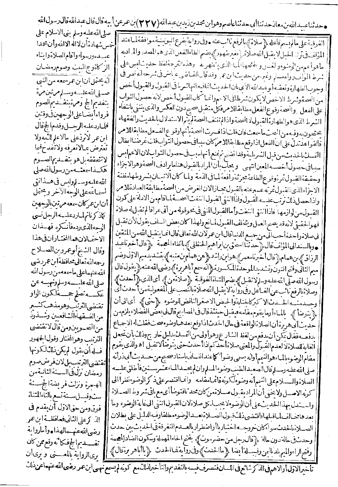 (قال رسول الله -صَلَّى اللَّهُ عَلَيْهِ وَسَلَّمَ-: لا تقبل) بضم المثناة الفوقية (صلاة من) أي الذي (أحدث) وصلاة بالرفع نائب عن الفاعل وفي رواية لا يقبل الله بالنصب على المفعولية من أحدث أي وجد منه الحدث الأكبر كالجنابة والحيض والأصغر الناقض للوضوء (حتى) أي إلى أن (يتوضأ) بالماء أو ما يقوم مقامه فيقبل حينئذ. قال في المصابيح، قال لي بعض الفضلاء: يلزم من حديث أبي هريرة أن الصلاة الواقعة في حال الأحدث إذا وقع بعدها وضوء صحّت، فقلت له: الإجماع يدفعه. فقال: يمكن أن يدفع من لفظ الشارع وهو أولى من التمسك بدليل خارج، وذلك بأن تجعل الغاية للصلاة لا لعدم القبول، والمعنى صلاة أحدكم إذا أحدث حتى يتوضأ لا تقبل اهـ.