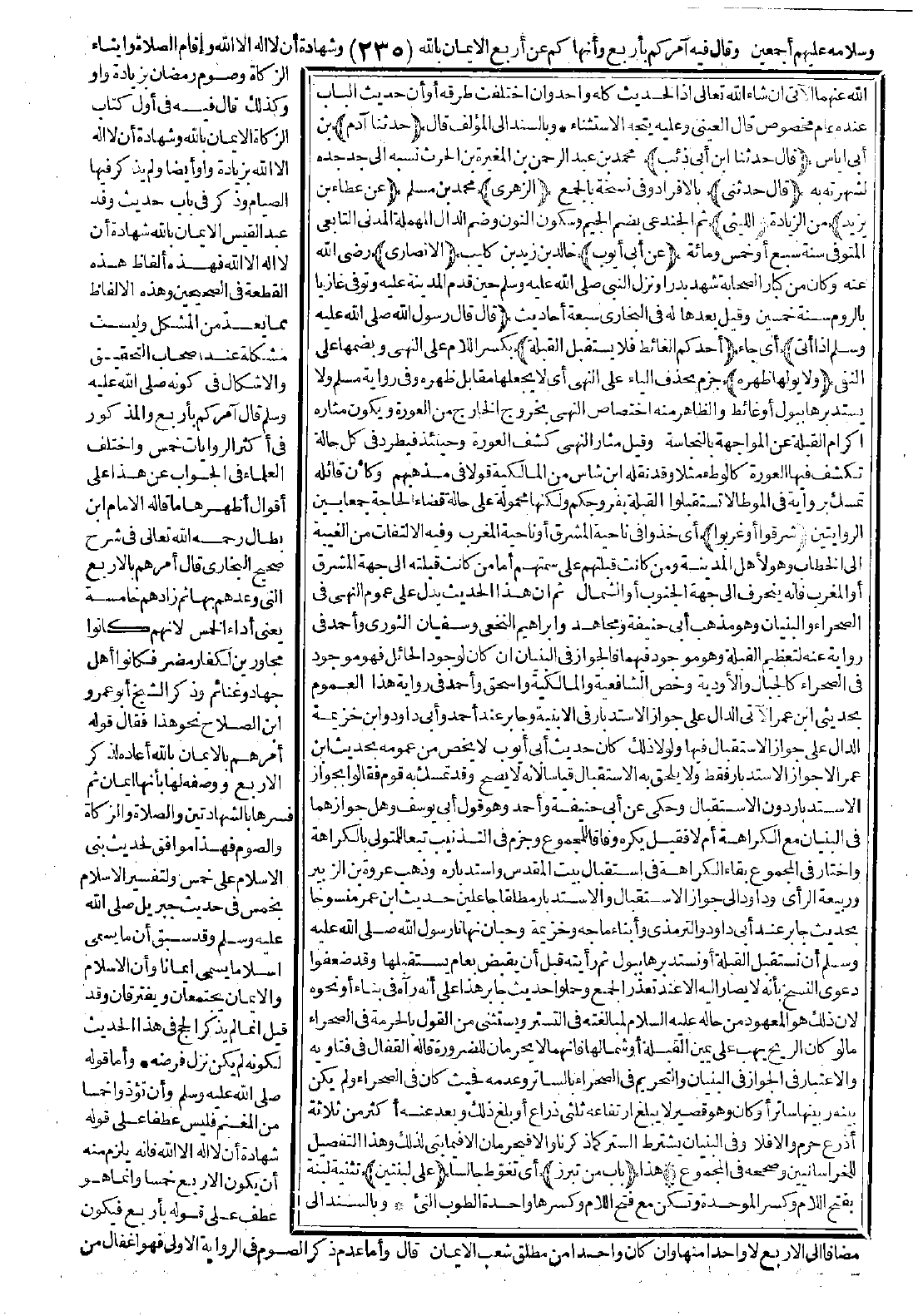 (قال رسول الله -صَلَّى اللَّهُ عَلَيْهِ وَسَلَّمَ- إذا أتى) أي جاء (أحدكم الغائط فلا يستقبل القبلة) بكسر اللام على النهي وبضمها على النفي (ولا يولها ظهره) جزم بحذف الياء على النهي أي لا يجعلها مقابل ظهره، وفي رواية مسلم ولا يستدبرها ببول أو غائط، والظاهر منه اختصاص النهي بخروج الخارج من العورة ويكون مثاره إكرام القبلة عن المواجهة بالنجاسة، وقيل: مثال النهي كشف العورة،
