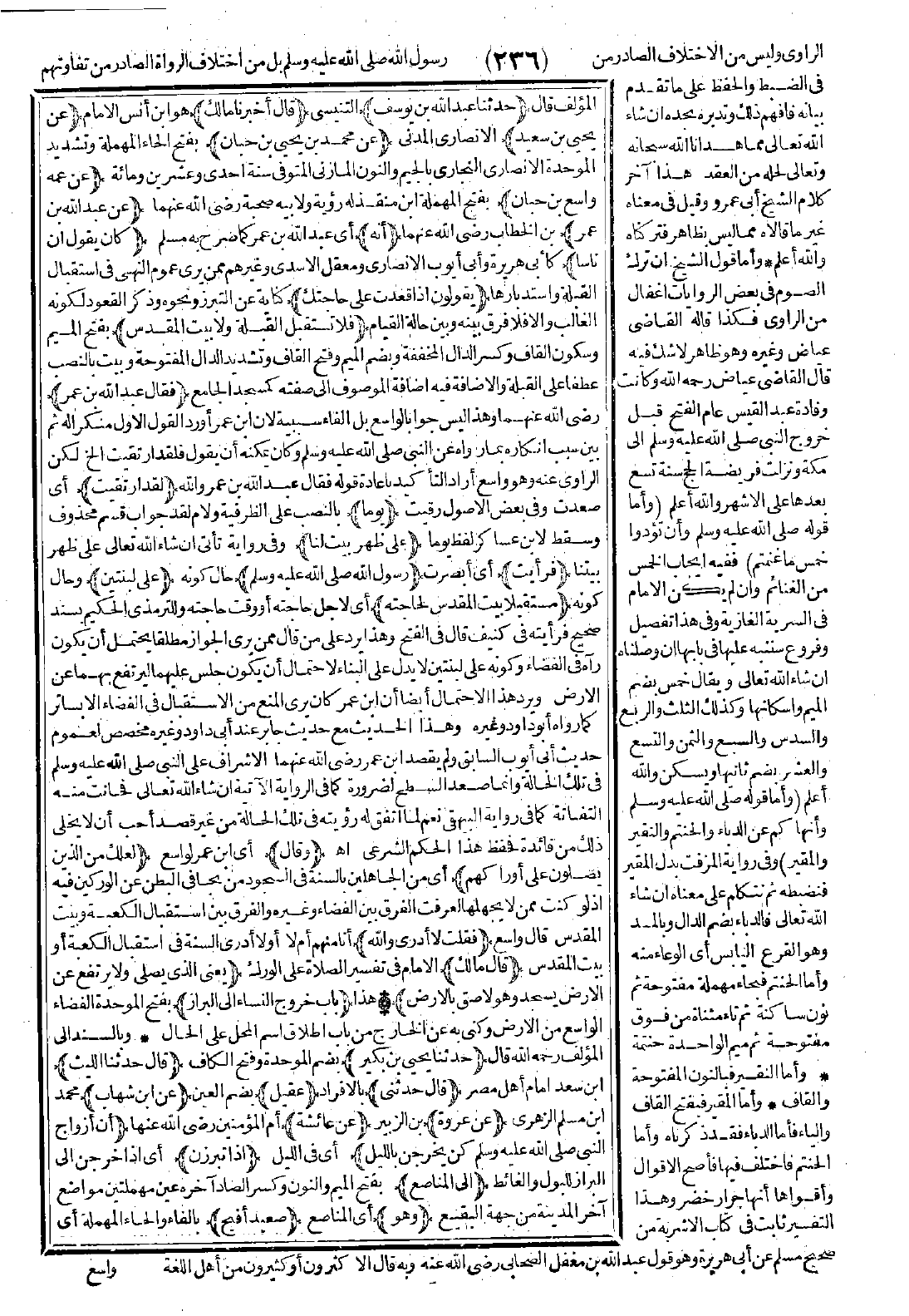قال: (حدّثنا عبد الله بن يوسف) التنيسي (قال: أخبرنا مالك) هو ابن أنس الإمام (عن يحيى بن سعيد) الأنصاري المدني (عن محمد بن يحيى بن حبان) بفتح الحاء المهملة وتشديد الموحدة الأنصاري النجاري بالجيم والنون المازني، المتوفى سنة إحدى وعشرين ومائة (عن عمه واسع بن حبان) بفتح المهملة ابن منقذ له رؤية ولأبيه صحبة رضي الله عنهما (عن عبد الله بن عمر) بن الخطاب رضي الله عنهما (أنه) أي عبد الله بن عمر كما صرح به مسلم (كان يقول):