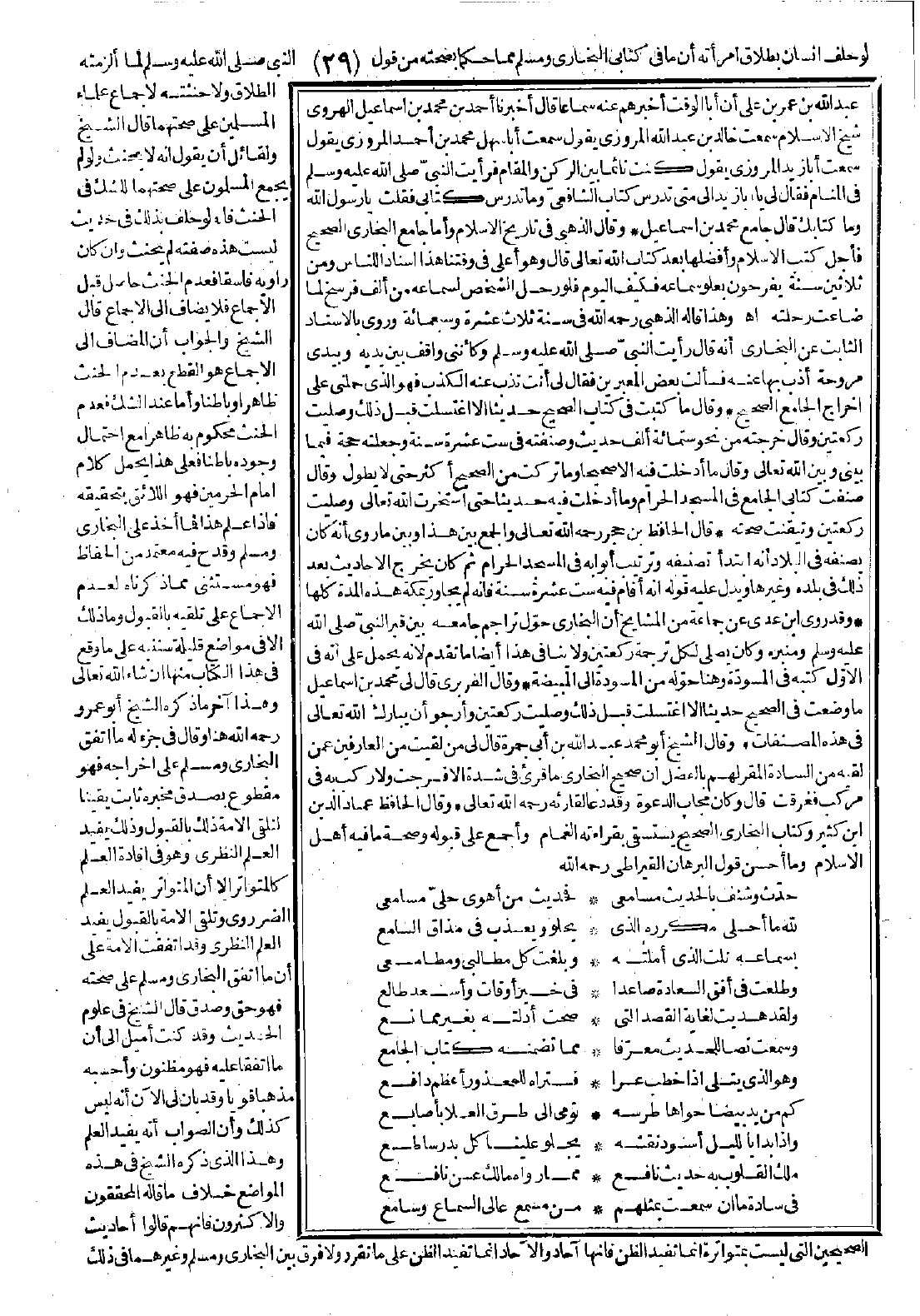 عبد الله بن عمر بن علي، أن أبا الوقت أخبرهم عنه سماعًا قال: أخبرنا أحمد بن محمد بن إسماعيل الهرويّ شيخ الإسلام، سمعت خالد بن عبد الله المروزي يقول: سمعت أبا سهل محمد بن أحمد المروزي يقول: سمعت أبا زيد المروزي يقول: "كنت نائمًا بين الركن والمقام فرأيت النبي -صَلَّى اللَّهُ عَلَيْهِ وَسَلَّمَ- في المنام فقال لي يا أبا زيد إلى متى تدرس كتاب الشافعيّ وما تدرس كتابي، فقلت يا رسول الله وما كتابك، قال: جامع محمد بن إسماعيل".
