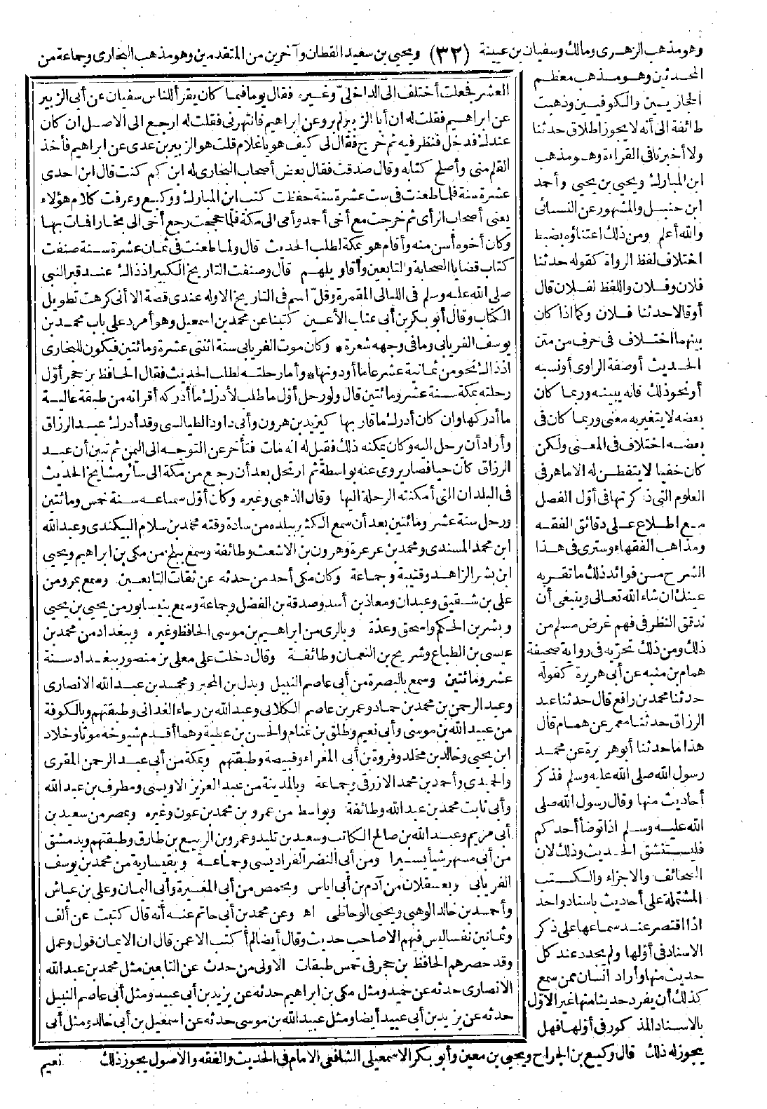 وجماعة، وإن مكّي أحد مَن حدّثه عن ثقات التابعين، وسمع بمرو من علي بن شقيق وعبدان ومعاذ بن أسد وصدقة بن الفضل وجماعة، وسمع بنيسابور من يحيى بن يحيى وبشر بن الحكم وإسحق وعدة، وبالري من إبراهيم بن موسى الحافظ وغيره، وببغداد من محمد بن عيسى بن الطباع وشريح بن النعمان وطائفة، وقال: دخلت على معلى بن منصور ببغداد سنة عشر ومائتين، وسمع بالبصرة من أبي عاصم النبيل وبدل بن المحبر ومحمد بن عبد الله الأنصاري وعبد الرحمن بن محمد بن حماد وعمر بن عاصم الكلابي وعبد الله بن رجاء الغداني وطبقتهم، وبالكوفة من عبيد الله بن موسى وأبي نعيم وطلق بن غنام والحسن بن عطية وهما أقدم شيوخه موتًا وخلاد بن يحيى وخالد بن مخلد وفروة بن أبي المغراء وقبيصة وطبقتهم، وبمكة من أبي عبد الرحمن المقري والحميدي وأحمد بن محمد الأزرقي وجماعة، وبالمدينة من عبد العزيز الأويسي ومطرف بن عبد الله وأبي ثابت محمد بن عبد الله وطائفة، وبواسط من عمرو بن محمد بن عون وغيره، وبمصر من سعيد بن أبي مريم وعبد الله بن صالح الكاتب وسعيد بن تليد وعمرو بن الربيع بن طارق وطبقتهم، وبدمشق من أبي مسهر شيئًا يسيرًا ومن أبي النضر الفراديسي وجماعة، وبقيسارية من محمد بن يوسف الفريابي، وبعسقلان من آدم بن أبي إياس، وبحمص من أبي المغيرة وأبي اليمان وعلي بن عيّاش وأحمد بن خالد الوهبي ويحيى الوحاظي اهـ.