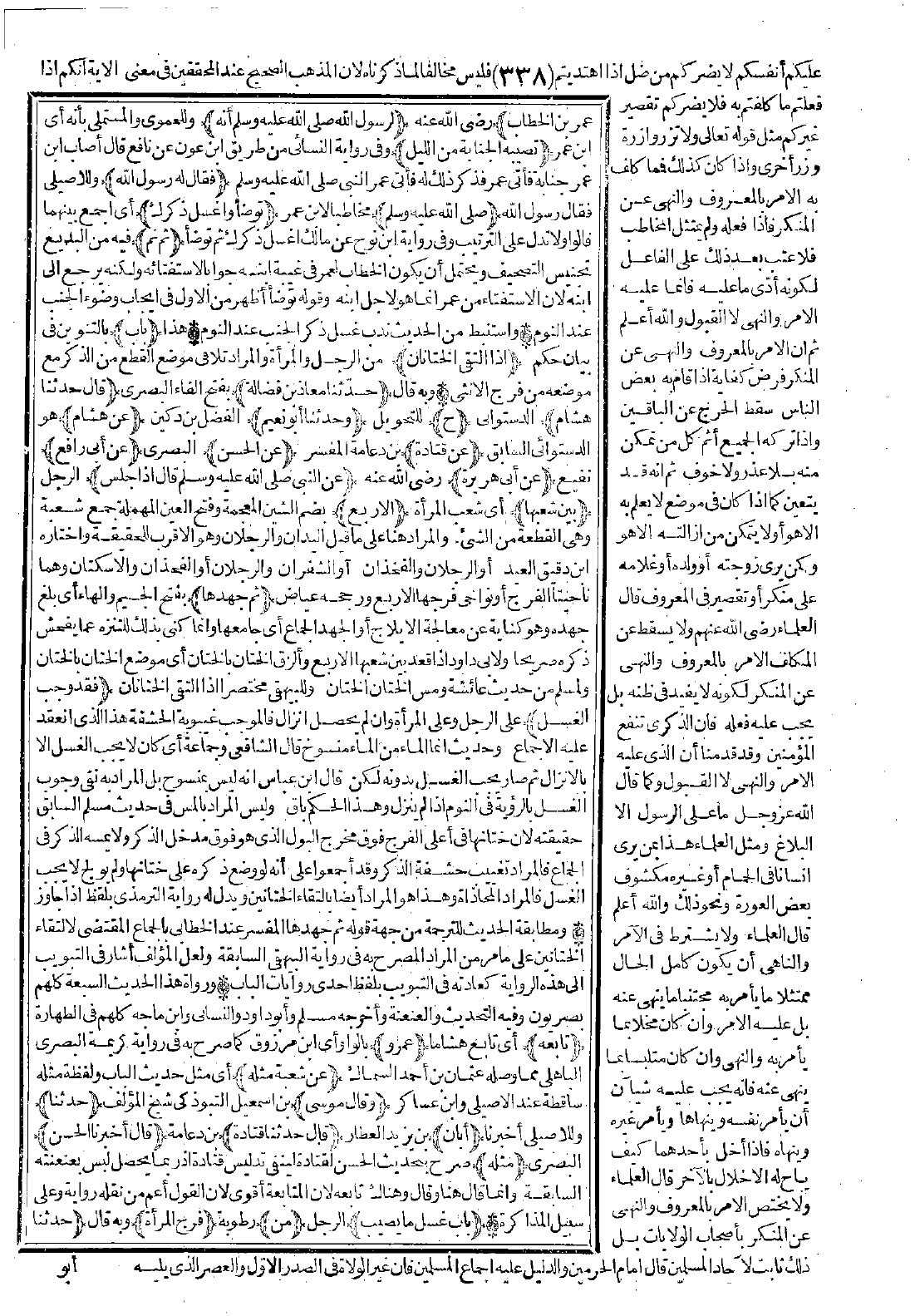 (وحدّثنا أبو نعيم) الفضل بن دكين (عن هشام) هو الدستوائي السابق (عن قتادة) بن دعامة المفسر (عن الحسن) البصري (عن أبي رافع) نفيع (عن أبي هريرة) رضي الله عنه (عن النبي -صَلَّى اللَّهُ عَلَيْهِ وَسَلَّمَ- قال): (إذا جلس) الرجل (بين شعبها) أي شعب المرأة (الأربع) بضم الشين المعجمة وفتح العين المهملة جمع شعبة وهي القطعة من الشيء، والمراد هنا على ما قيل اليدان والرجلان وهو الأقرب للحقيقة، واختاره ابن دقيق العيد أو الرجلان والفخذان أو الشفران والرجلان أو الفخذان والإسكتان، وهما ناحيتا الفرج آو نواحي فرجها الأربع ورجحه عياض، (ثم جهدها) بفتح الجيم والهاء أي بلغ جهده وهو كناية عن معالجة الإيلاج أو الجهد الجماع أي جامعها، وإنما كنى بذلك للتنره عمّا يفحش ذكره صريحًا، ولأبي داود إذا قعد بين شعبها الأربع وألزق الختان بالختان أي موضع الختان بالختان، ولمسلم من حديث عائشة ومس الختان الختان، وللبيهقي مختصرًا إذا التقى الختانان (فقد وجب الغسل) على الرجل وعلى المرأة وإن لم يحصل إنزال فالموجب غيبوبة الحشفة. هذا الذي انعقد عليه الإجماع، وحديث: إنما الماء من الماء منسوخ، قال الشافعي وجماعة أي كان لا يجب الغسل إلا بالإنزال ثم صار يجب الغسل بدونه، لكن قال ابن عباس: إنه ليس بمنسوخ بل المراد به نفي وجوب الغسل بالرؤية في النوم إذا لم ينزل، وهذا الحكم باقٍ. وليس المراد بالمس في حديث مسلم السابق حقيقته لأن ختانها في أعلى الفرج فوق مخرج البول الذي هو فوق مدخل الذكر ولا يمسه الذكر في الجماع، فالمراد تغييب حشفة الذكر، وقد أجمعوا على أنه لو وضع ذكره على ختانها ولم يولج لا يجب الغسل، فالمراد المحاذاة. وهذا هو المراد أيضًا بالتقاء الختانين، ويدل له رواية الترمذي بلفظ إذا جاوز.