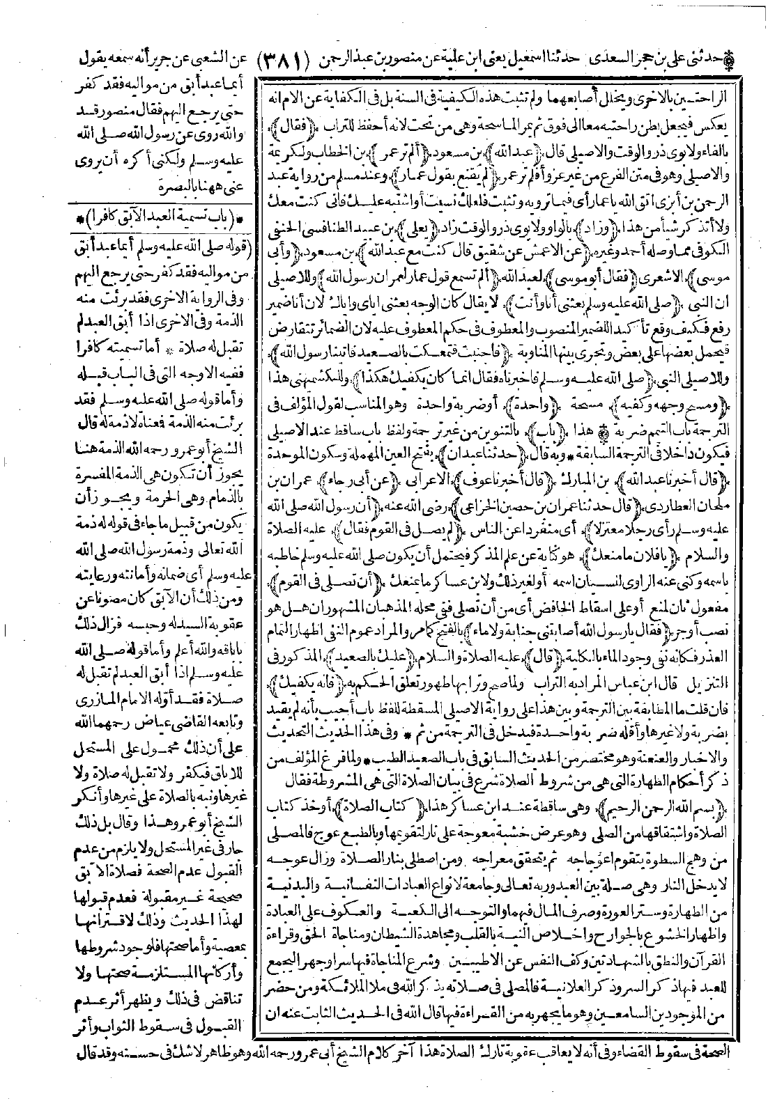 التحديث والإخبار والعنعنة وهو مختصر من الحديث السابق في باب الصعيد الطيب.