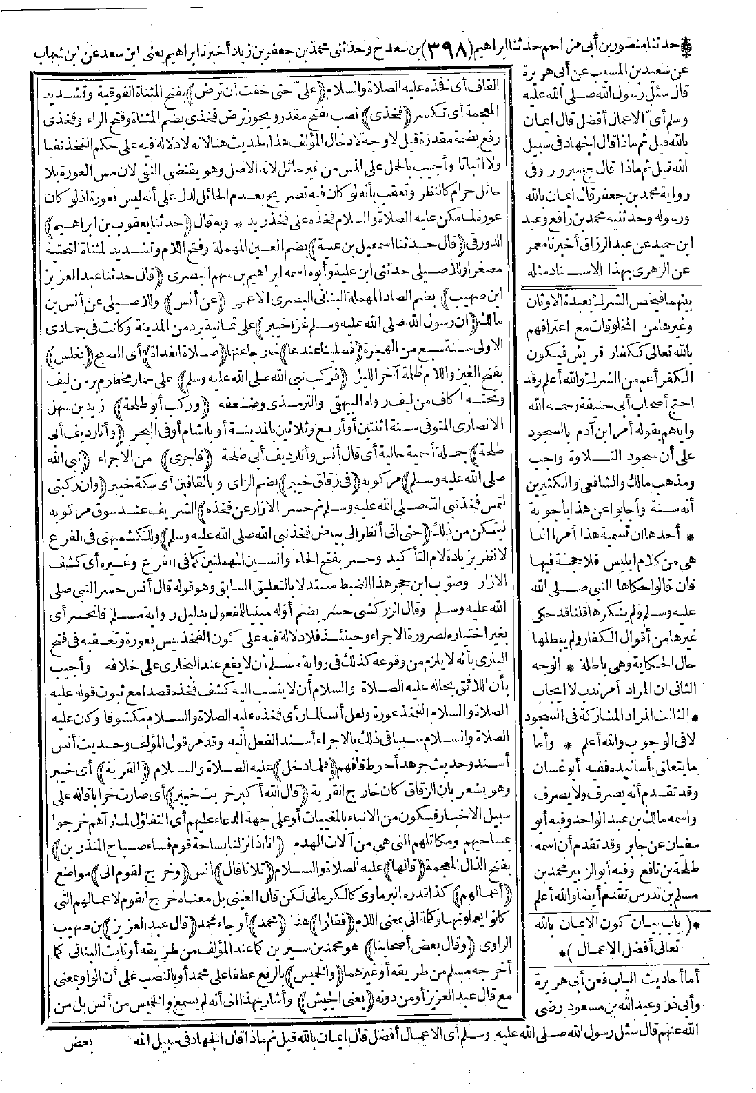 371 - حَدَّثَنَا يَعْقُوبُ بْنُ إِبْرَاهِيمَ قَالَ: حَدَّثَنَا إِسْمَاعِيلُ ابْنُ عُلَيَّةَ قَالَ: حَدَّثَنَا عَبْدُ الْعَزِيزِ بْنُ صُهَيْبٍ عَنْ أَنَسٍ أَنَّ رَسُولَ اللَّهِ -صَلَّى اللَّهُ عَلَيْهِ وَسَلَّمَ- غَزَا خَيْبَرَ فَصَلَّيْنَا عِنْدَهَا صَلاَةَ الْغَدَاةِ بِغَلَسٍ، فَرَكِبَ نَبِيُّ اللَّهِ -صَلَّى اللَّهُ عَلَيْهِ وَسَلَّمَ- وَرَكِبَ أَبُو طَلْحَةَ وَأَنَا رَدِيفُ أَبِي طَلْحَةَ، فَأَجْرَى نَبِيُّ اللَّهِ -صَلَّى اللَّهُ عَلَيْهِ وَسَلَّمَ- فِي زُقَاقِ خَيْبَرَ وَإِنَّ رُكْبَتِي لَتَمَسُّ فَخِذَ نَبِيِّ اللَّهِ -صَلَّى اللَّهُ عَلَيْهِ وَسَلَّمَ-. ثُمَّ حَسَرَ الإِزَارَ عَنْ فَخِذِهِ حَتَّى إِنِّي أَنْظُرُ إِلَى بَيَاضِ فَخِذِ نَبِيِّ اللَّهِ -صَلَّى اللَّهُ عَلَيْهِ وَسَلَّمَ-. فَلَمَّا دَخَلَ الْقَرْيَةَ قَالَ: «اللَّهُ أَكْبَرُ خَرِبَتْ خَيْبَرُ، إِنَّا إِذَا نَزَلْنَا بِسَاحَةِ قَوْمٍ فَسَاءَ صَبَاحُ الْمُنْذَرِينَ». قَالَهَا ثَلاَثًا. قَالَ: وَخَرَجَ الْقَوْمُ إِلَى أَعْمَالِهِمْ، فَقَالُوا: مُحَمَّدٌ؟ -قَالَ عَبْدُ الْعَزِيزِ وَقَالَ بَعْضُ أَصْحَابِنَا- وَالْخَمِيسُ يَعْنِي الْجَيْشَ. قَالَ: فَأَصَبْنَاهَا عَنْوَةً، فَجُمِعَ السَّبْيُ! "فَجَاءَ دِحْيَةُ فَقَالَ: يَا نَبِيَّ اللَّهِ أَعْطِنِي جَارِيَةً مِنَ السَّبْيِ. قَالَ: اذْهَبْ فَخُذْ جَارِيَةً. فَأَخَذَ صَفِيَّةَ بِنْتَ حُيَىٍّ. فَجَاءَ رَجُلٌ إِلَى النَّبِيِّ -صَلَّى اللَّهُ عَلَيْهِ وَسَلَّمَ- فَقَالَ: يَا نَبِيَّ اللَّهِ أَعْطَيْتَ دِحْيَةَ صَفِيَّةَ بِنْتَ حُيَىٍّ سَيِّدَةَ قُرَيْظَةَ وَالنَّضِيرِ، لاَ تَصْلُحُ إِلاَّ لَكَ. قَالَ: ادْعُوهُ بِهَا. فَجَاءَ بِهَا. فَلَمَّا نَظَرَ إِلَيْهَا النَّبِيُّ -صَلَّى اللَّهُ عَلَيْهِ وَسَلَّمَ- قَالَ: خُذْ جَارِيَةً مِنَ السَّبْيِ غَيْرَهَا. قَالَ: فَأَعْتَقَهَا النَّبِيُّ -صَلَّى اللَّهُ عَلَيْهِ وَسَلَّمَ- وَتَزَوَّجَهَا. فَقَالَ لَهُ ثَابِتٌ: يَا أَبَا حَمْزَةَ مَا أَصْدَقَهَا؟ قَالَ: نَفْسَهَا، أَعْتَقَهَا وَتَزَوَّجَهَا. حَتَّى إِذَا كَانَ بِالطَّرِيقِ جَهَّزَتْهَا لَهُ أُمُّ سُلَيْمٍ فَأَهْدَتْهَا لَهُ مِنَ اللَّيْلِ، فَأَصْبَحَ النَّبِيُّ -صَلَّى اللَّهُ عَلَيْهِ وَسَلَّمَ- عَرُوسًا، فَقَالَ: مَنْ كَانَ عِنْدَهُ شَىْءٌ فَلْيَجِئْ بِهِ. وَبَسَطَ نِطَعًا فَجَعَلَ الرَّجُلُ يَجِيءُ بِالتَّمْرِ، وَجَعَلَ الرَّجُلُ يَجِيءُ بِالسَّمْنِ"، قَالَ: وَأَحْسِبُهُ قَدْ ذَكَرَ السَّوِيقَ. قَالَ: فَحَاسُوا حَيْسًا، فَكَانَتْ وَلِيمَةَ رَسُولِ اللَّهِ -صَلَّى اللَّهُ عَلَيْهِ وَسَلَّمَ-. [الحديث 371 - أطرافه في: 610، 947، 2228، 2235، 2889، 2893، 2943، 2944، 2945، 2991، 3085، 3086، 3367، 3647، 4083، 4084، 4197، 4198، 4199، 4200، 4201، 4211، 4212، 4213، 5085، 5159، 5169، 5387، 5425، 5528، 5968، 6185، 6363، 6369، 7333].