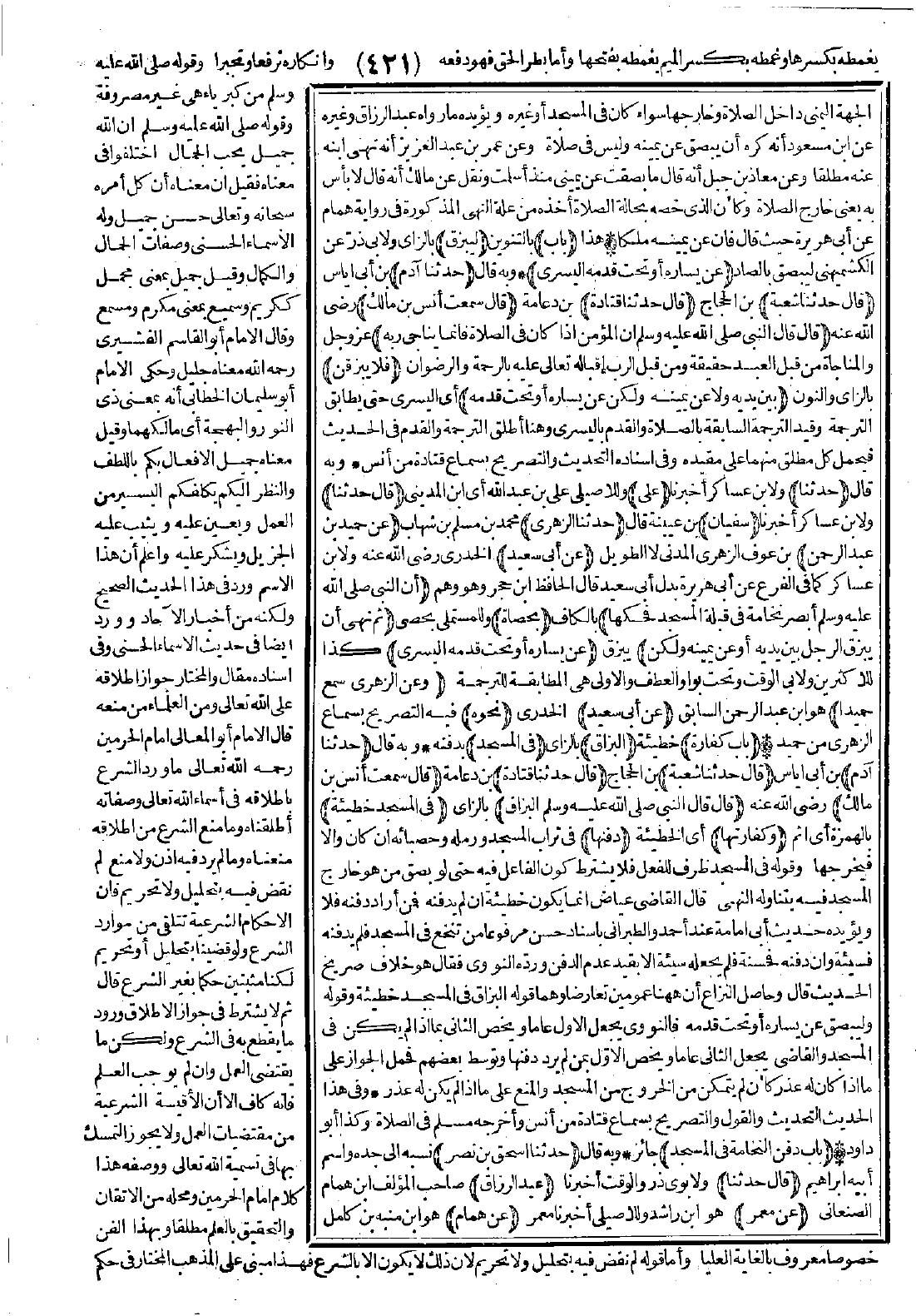 الجهة اليمنى داخل الصلاة وخارجها سواء كان في المسجد أو غيره، ويؤيّده ما رواه عبد الرزّاق وغيره عن ابن مسعود