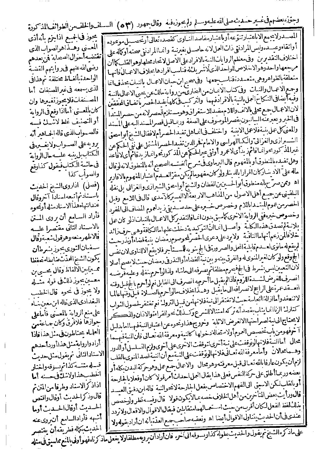 المصدر لا يجمع إلا باعتبار تنوّعه أو باعتبار مقاصد الناوي، كقصده تعالى، أو تحصيل موعوده أو اتقاء وعيده. وليس المراد نفي ذات العمل لأنه حاصل بغير نية، وإنما المراد نفي صحته أو كماله على اختلاف التقديرين. وفي معظم الروايات النية بالإفراد على الأصل لاتحاد محلها وهو القلب، كما أن مرجعها واحد وهو الإخلاص للواحد الذي لا شريك له، فناسب إفرادها بخلاف الأعمال فإنها متعلقة بالظواهر وهي متعددة فناسب جمعها. وفي صحيح ابن