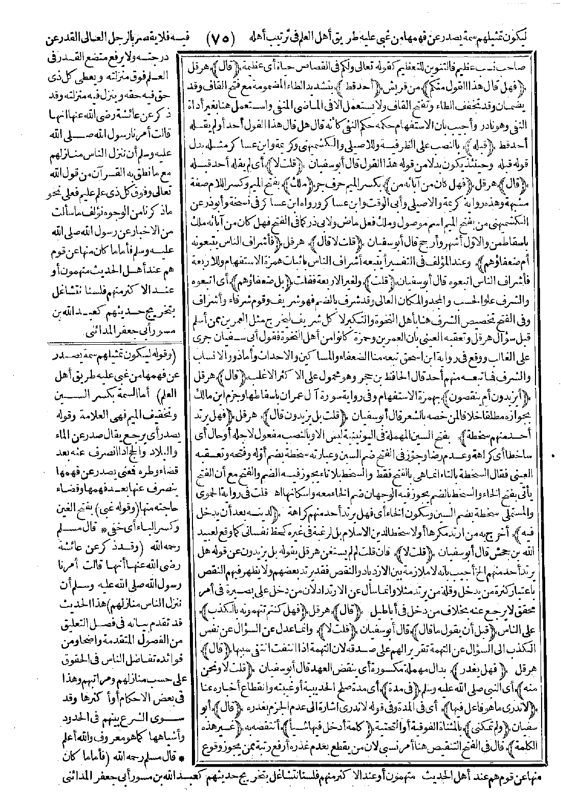 صاحب نسب عظيم، فالتنوين للتعظيم كقوله تعالى: {وَلَكُمْ فِي الْقِصَاصِ حَيَاةٌ} [البقرة: 179] أي عظيمة، (قال) هرقل (فهل قال هذا القول منكم) من قريش (أحد قط) بتشديد الطاء المضمومة مع فتح القاف، وقد يضمان وقد تخفف الطاء وتفتح القاف ولا يستعمل إلا في الماضي المنفي، واستعمل هنا بغير أداة النفي وهو نادر، وأجيب بأن الاستفهام حكمه حكم النفي كأنه قال: هل قال هذا القول أحد أو لم يقله أحد قط (قبله) بالنصب على الظرفية، وللأصيلي والكشميهني وكريمة وابن عساكر مثله بدل قوله قبله، وحينئذ يكون بدلاً من قوله هذا القول، قال أبو سفيان (قلت لا) أي لم يقله أحد قبله. (قال) هرقل (فهل كان من آبائه من) بكسر الميم حرف جر (ملك) بفتح الميم وكسر اللام صفة مشبهة، وهذه رواية كريمة والأصيلي وأبي الوقت وابن عساكر، ورواه ابن عساكر في نسخة وأبو ذر عن الكشميهني من بفتح الميم اسم موصول وملك فعل ماضٍ، ولأبي ذر كما في الفتح فهل كان من آبائه ملك بإسقاط من، والأوّل أشهر وأرجح. قال أبو سفيان (قلت: لا. قال) هرقل (فأشراف الناس يتبعونه أم ضعفاؤهم) وعند المؤلف في التفسير أيتبعه أشراف الناس بإثبات همزة الاستفهام، وللأربعة فأشراف الناس اتبعوه. قال أبو سفيان (قلت) ولغير الأربعة فقلت (بل ضعفاؤهم) أي اتبعوه، والشرف علو الحسب والمجد والمكان العالي، وقد شرف بالضم فهو شريف وقوم شرفاء وأشراف وفي الفتح تخصيص الشرف هنا بأهل النخوة والتكبّر لا كل شريف ليخرج مثل العمرين ممن أسلم قبل سؤال هرقل، وتعقبه العيني بأن العمرين وحمزة كانوا من أهل النخوة. فقول أبي سفيان جرى على الغالب.