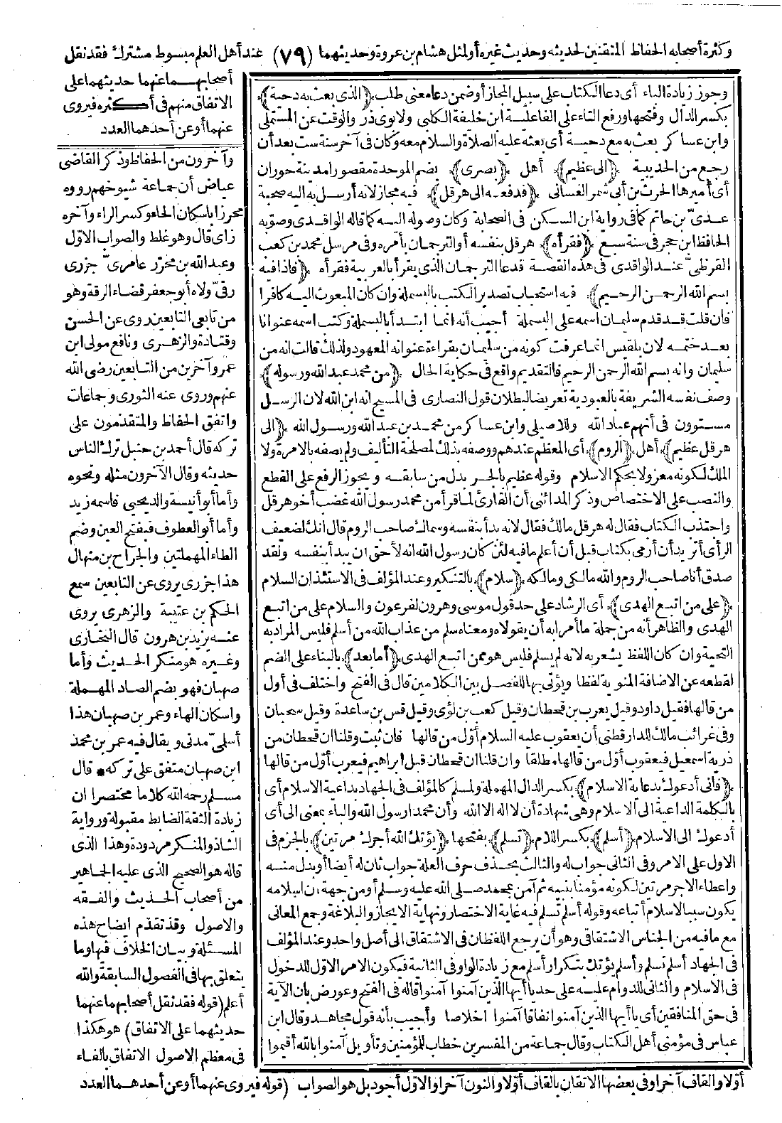 (من محمد عبد الله ورسوله) وصف نفسه الشريفة بالعبودية تعريضًا لبطلان قول النصارى في المسيح أنه ابن الله، لأن الرسل مستوون في أنهم عباد الله. وللأصيلي وابن عساكر من محمد بن عبد الله ورسول الله (إلى هرقل عظيم) أهل (الروم) أي المعظم عندهم ووصفه بذلك لمصلحة التأليف ولم يصفه بالأمرة ولا الملك لكونه معزولاً بحكم الإسلام، وقوله: عظيم بالجر بدل من سابقه، ويجوز الرفع على القطع والنصب على الاختصاص وذكر المدائني أن القارىء لما قرأ من محمد رسول الله غضب أخو هرقل واجتذب الكتاب فقال له هرقل: ما لك؟ فقال: لأنه بدأ بنفسه وسماك صاحب الروم. قال: إنك لضعيف الرأي أتريد أن أرمي بكتاب قبل أن أعلم ما فيه لئن كان رسول الله إنه لأحق أن يبدأ بنفسه ولقد صدق أنا صاحب الروم والله مالكي ومالكه. (سلام) بالتنكير، وعند المؤلف في الاستئذان السلام (على من اتبع الهدى) أي الرشاد على حد قول موسى وهارون لفرعون: {وَالسَّلَامُ عَلَى مَنِ اتَّبَعَ الْهُدَى} [طه: 47]، والظاهر أنه من جملة ما أُمرا به أن يقولاه، ومعناه سلم من عذاب الله من أسلم فليس المراد به التحية وإن كان اللفظ يُشعِر به لأنه لم يسلم، فليس هو ممن اتبع الهدى.