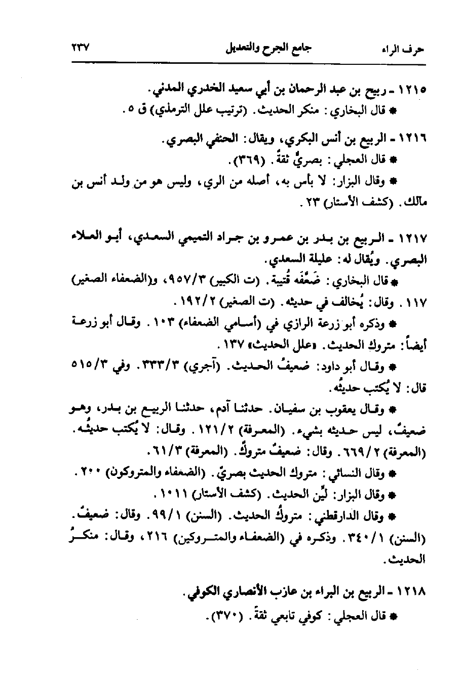 1217 - الربيع بن بدر بن عمرو بن جراد التميمي السعدي، أبو العلاء البصري. ويُقال له: عليلة السعدي.