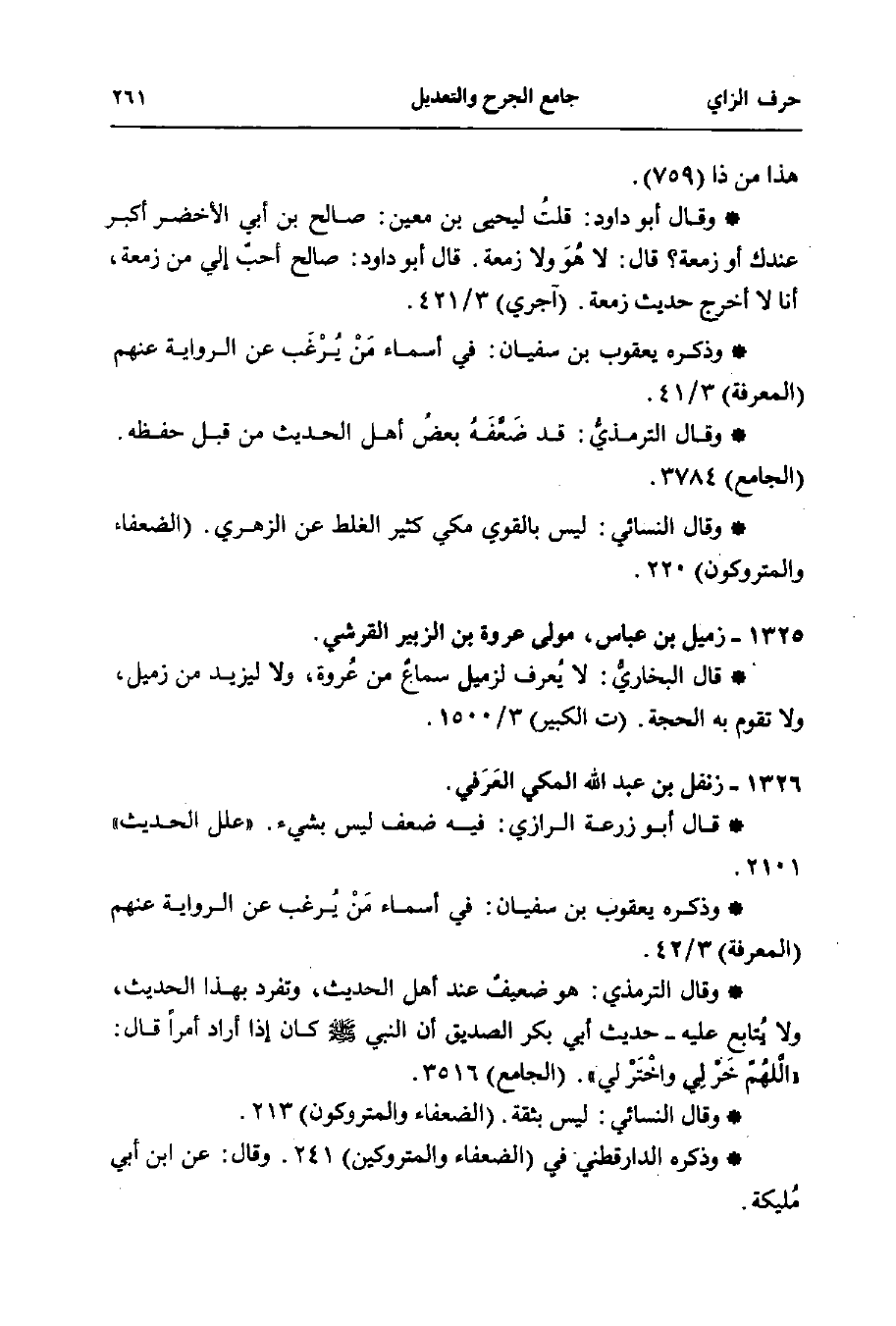 * قال البخاريُّ: لا يُعرف لزميل سماعٌ من عُروة، ولا ليزيد من زميل، ولا تقوم به الحجة. (ت الكبير) 3/ 1500.