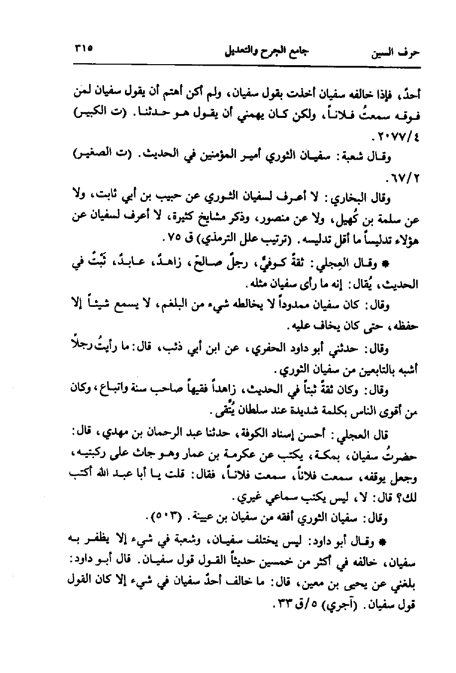 وقال شعبة: سفيان الثورى أمير المؤمنين في الحديث. (ت الصغير) 2/ 67.