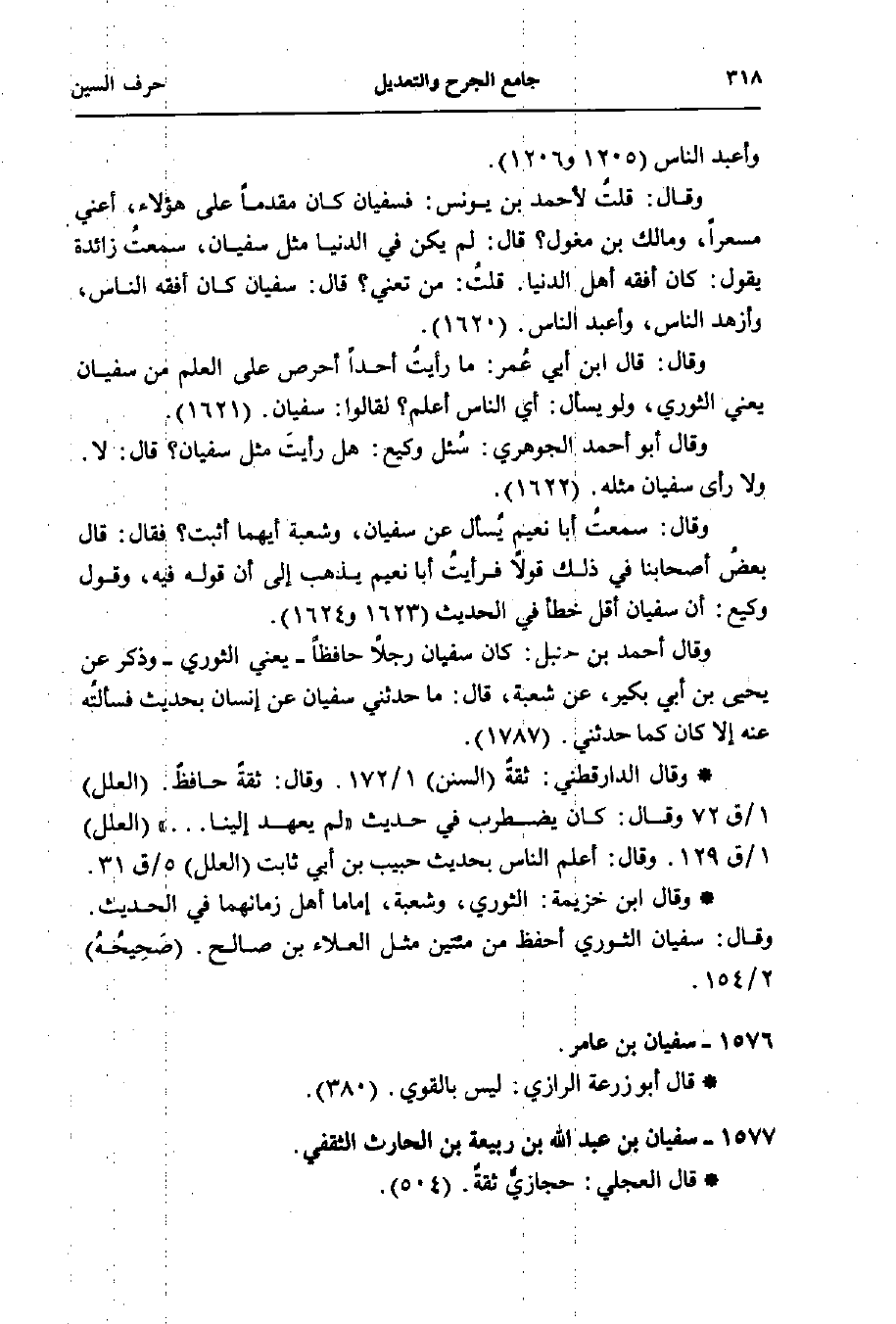 وقال: قال ابن أبي عُمر: ما رأيتُ أحدًا أحرص على العلم من سفيان يعني الثوري، ولو يسأل: أي الناس أعلم؟ لقالوا: سفيان. (1621).