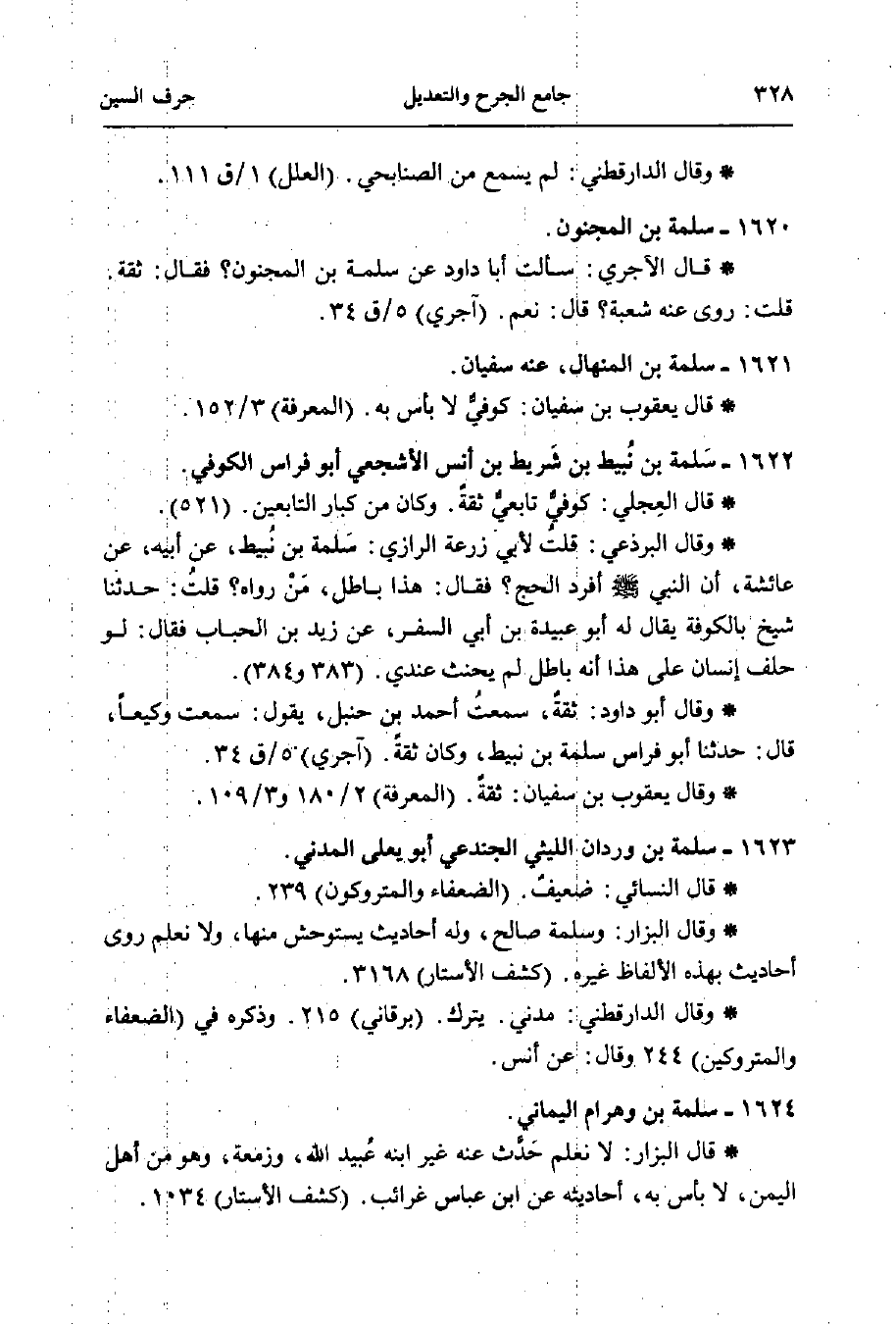 1622 - سَلمة بن نُبيط بن شَريط بن أنس الأشجعي أبو فراس الكوفي.