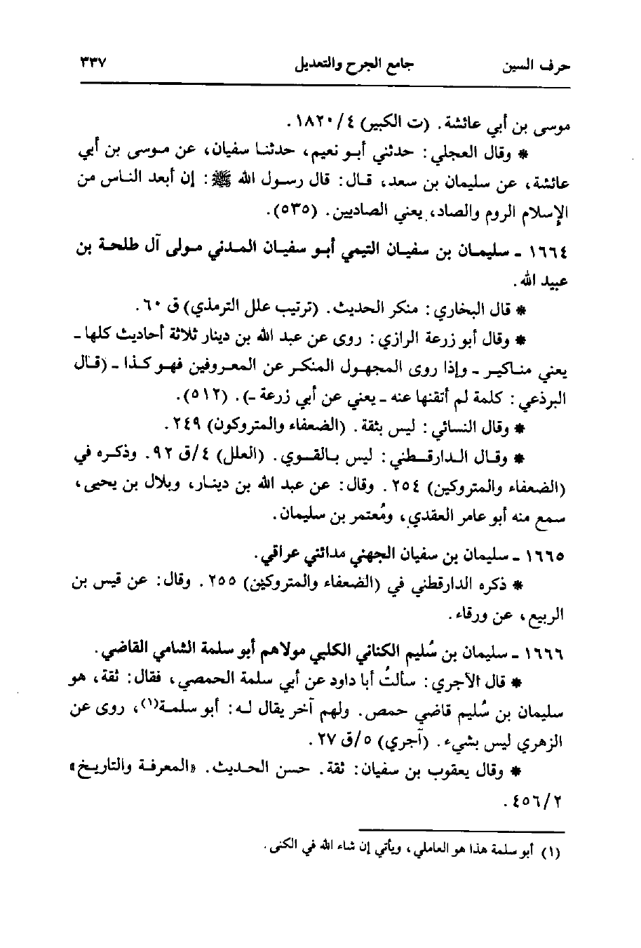 * وقال العجلي: حدثني أبو نعيم، حدثنا سفيان، عن موسى بن أبي عائشة؛ عن سليمان بن سعد، قال: قال رسول الله - صلى الله عليه وسلم -: إن أبعد الناس من الإسلام الروم والصاد، يعني الصاديين. (535).