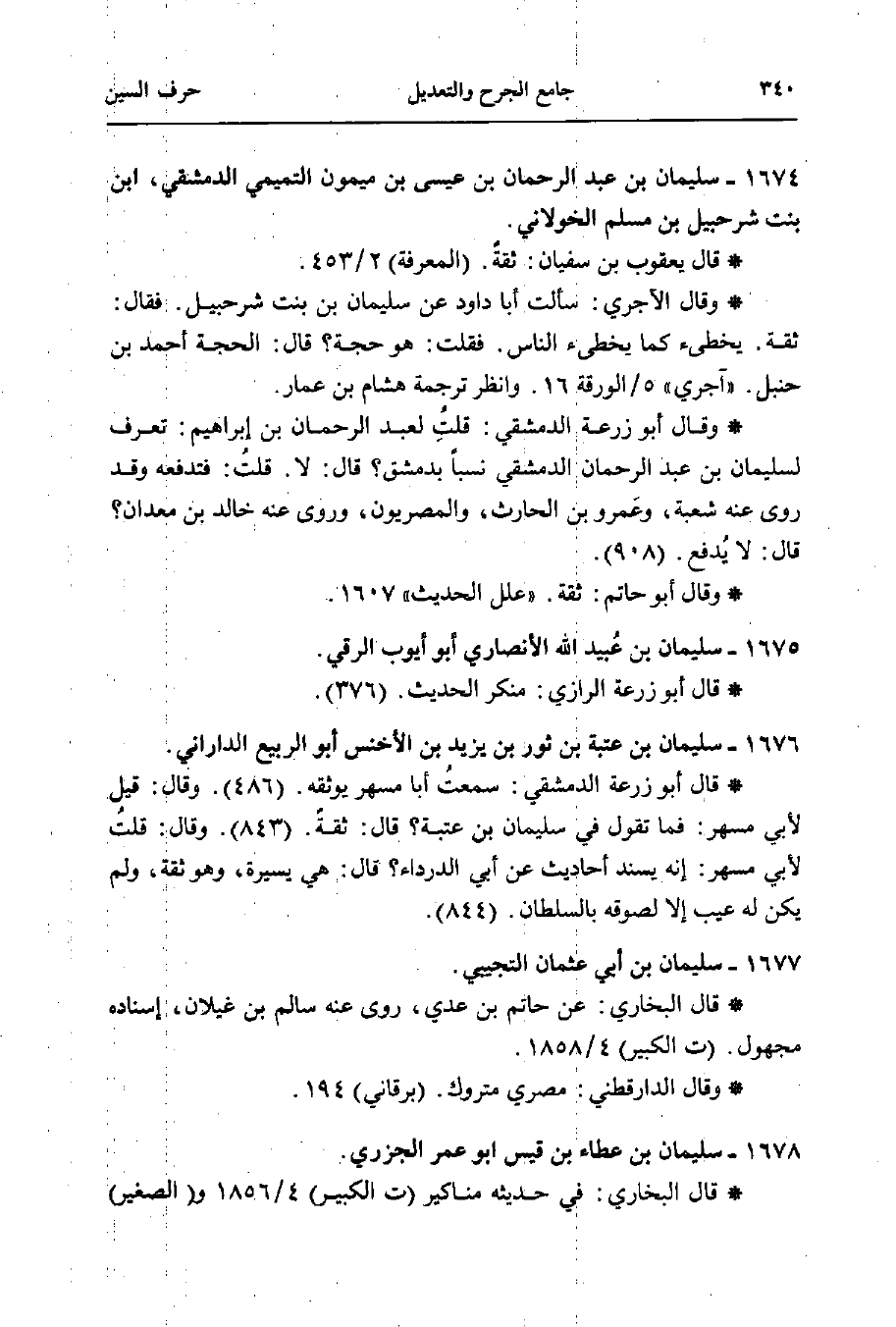 * وقال أبو زرعة الدمشقي: قلتُ لعبد الرحمن بن إبراهيم: تعرف لسليمان بن عبد الرحمن الدمشقي نسبًا بدمشق؟ قال: لا. قلتُ: فتدفعه وقد روى عنه شعبة، وعَمرو بن الحارث، والمصريون، وروى عنه خالد بن معدان؟ قال: لا يُدفع. (908).