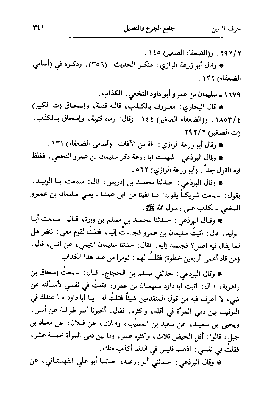 * وقال البرذعي: شهدت أبا زرعة ذكر سليمان بن عمرو النخعي، فغلظ فيه القول جدًّا. (أبو زرعة الرازي) 522.