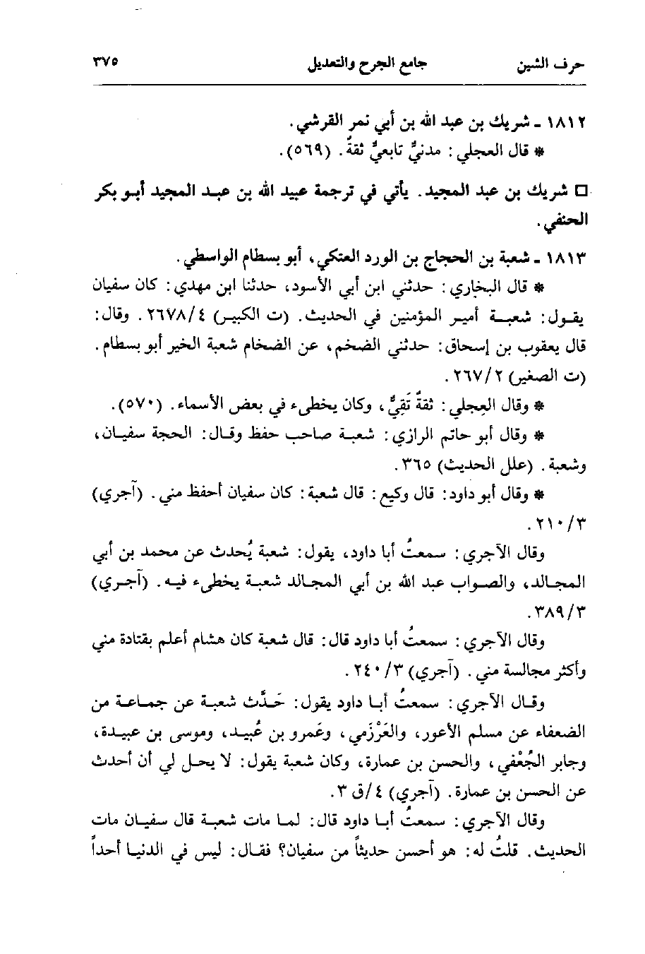 * قال البخاري: حدثني ابن أبي الأسود، حدثنا ابن مهدي: كان سفيان يقول: شعب أمير المؤمنين في الحديث. (ت الكبير) 4/ 2678. وقال: قال يعقوب بن إسحاق: حدثني الضخم، عن الضخام شعبة الخير أبو بسطام. (ت الصغير) 2/ 267.