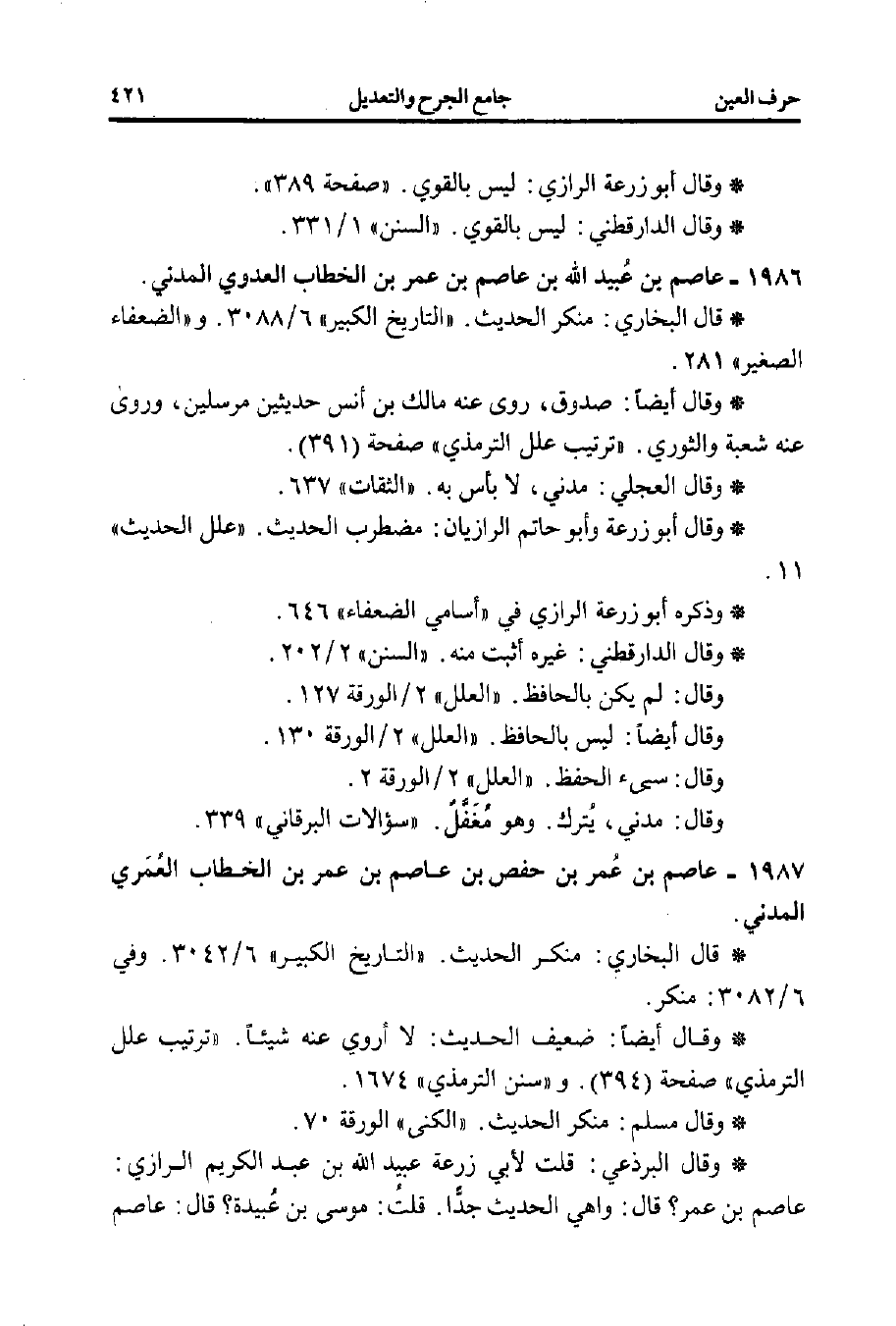 1987 - عاصم بن عُمر بن حفص بن عاصم بن عمر بن الخطاب العُمَري المدني.