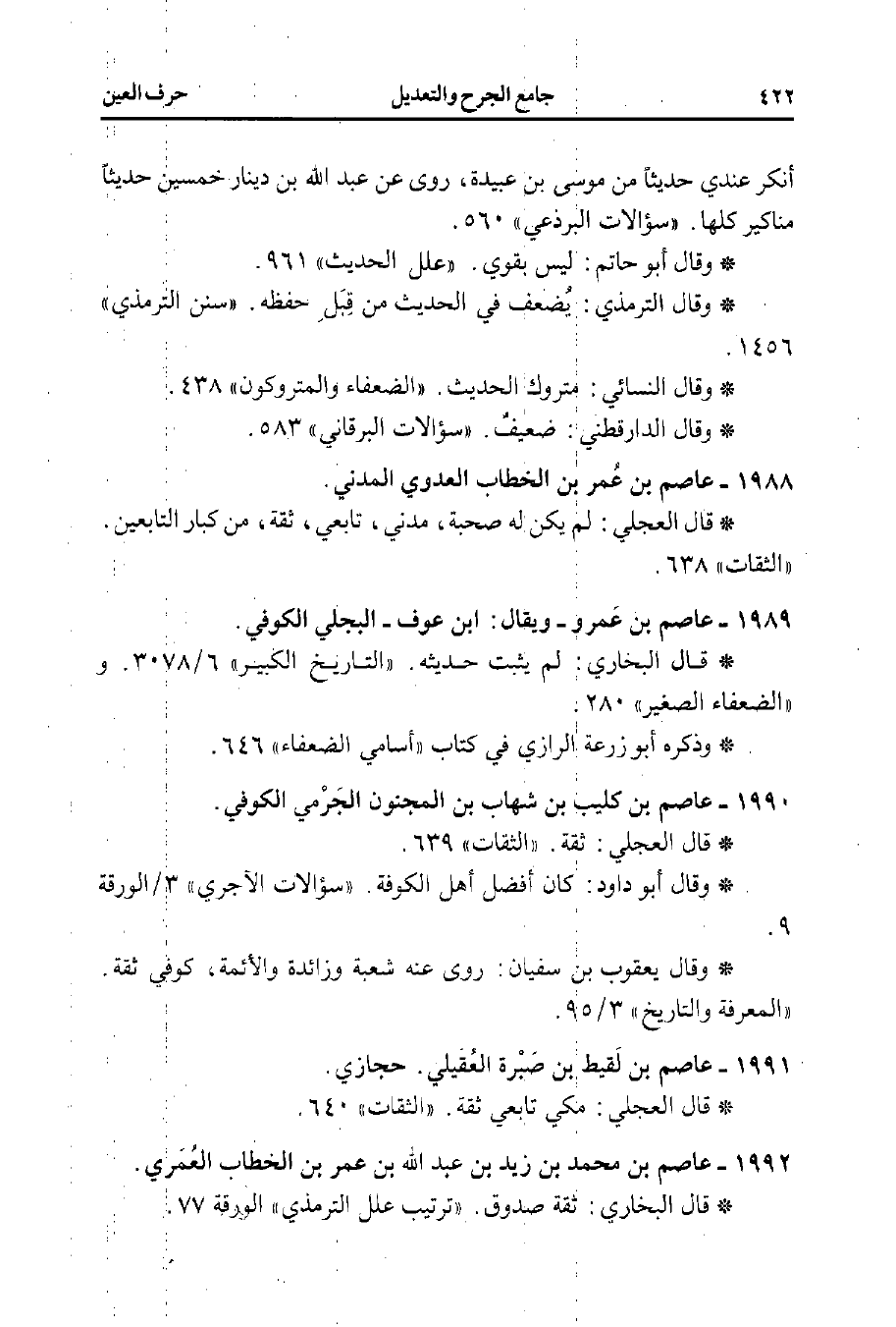 1992 - عاصم بن محمد بن زيد بن عبد الله بن عمر بن الخطاب العُمَري.