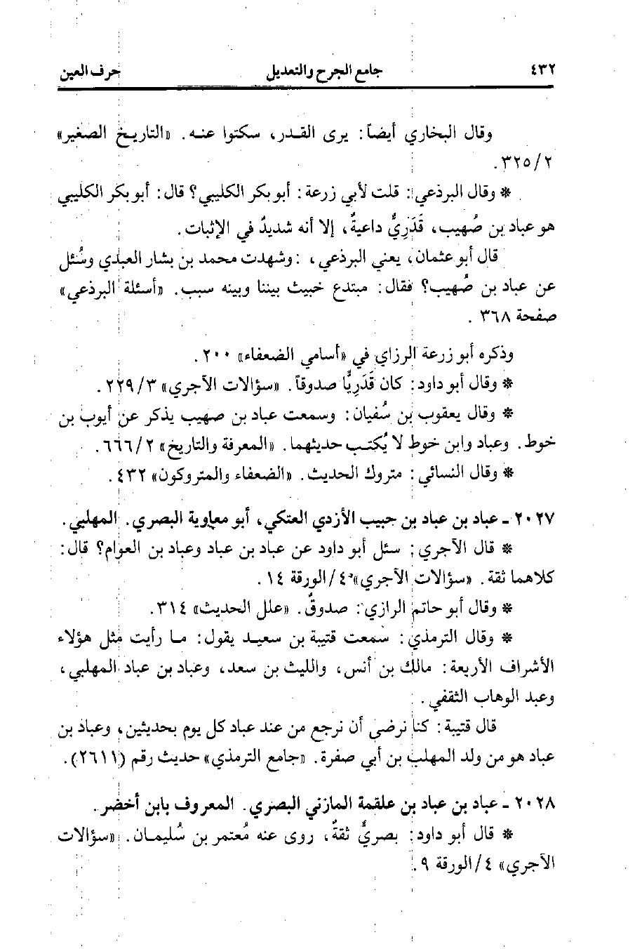 * وقال البرذعي: قلت لأبي زرعة: أبو بكر الكليبي؟ قال: أبو بكر الكليبي هو عباد بن صُهيب، قدَرِيٌّ داعيةٌ، إلا أنه شديدٌ في الإثبات.