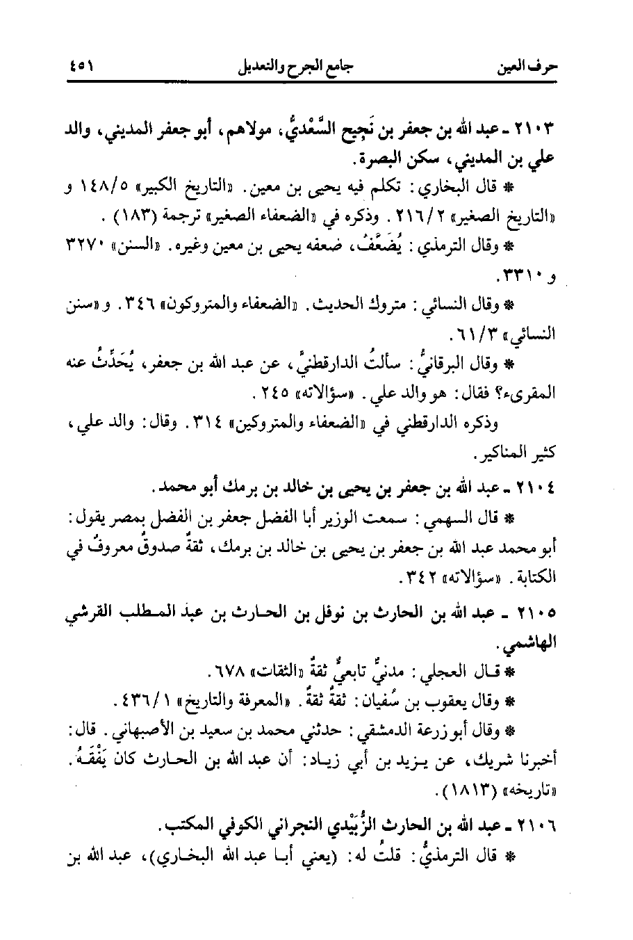 2103 - عبد الله بن جعفر بن نَجِيح السَّعْديُّ، مولاهم، أبو جعفر المديني، والد علي بن المديني، سكن البصرة.