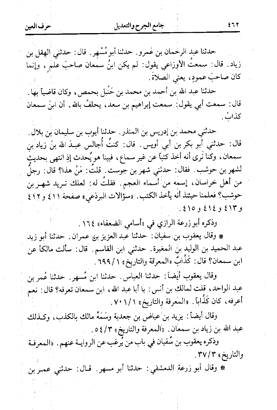 وقال يعقوب أيضًا: حدثنا العباس. حدثنا ابن مُسهر. حدثنا عُمر بن عبد الواحد، قلت لمالك بن أنس: يا أبا عبد الله، ابن سمعان تعرفه؟ قال: نعم أعرفه، كان كَذَّابًا. "المعرفة والتاريخ"1/ 701.