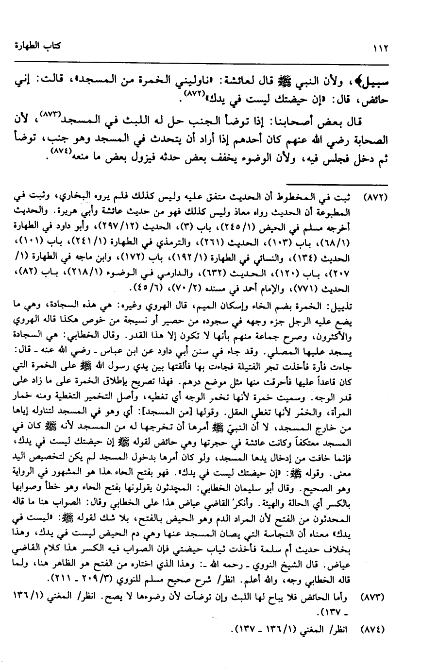 ، ولأن النبي - صَلَّى اللَّهُ عَلَيْهِ وَسَلَّمَ - قال لعائشة: «ناوليني الخمرة من المسجد " قالت: إني حائض، قال: " إن حيضتك ليست في يدك» .