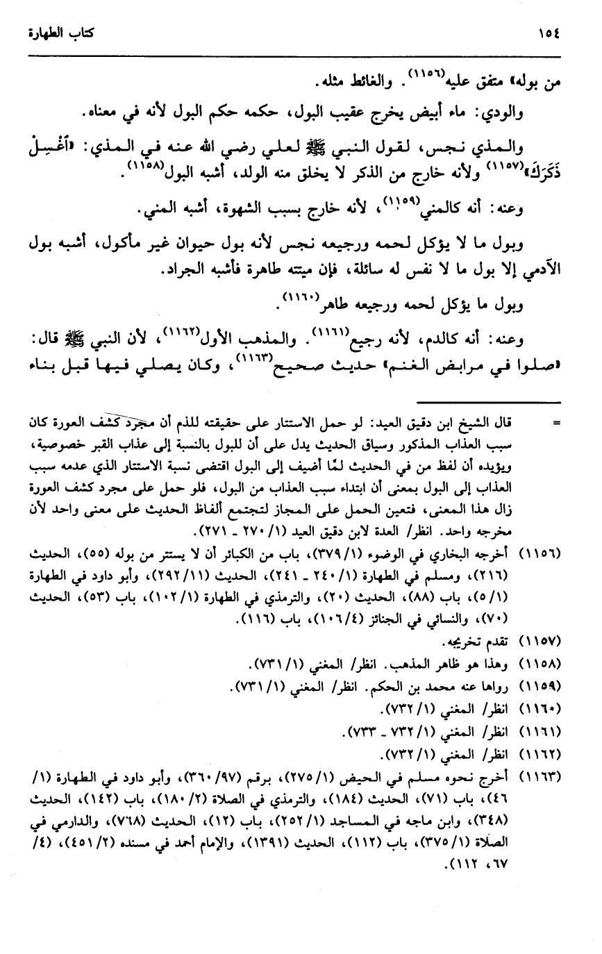 وبول ما يؤكل لحمه ورجيعه طاهر، وعنه أنه كالدم؛ لأنه رجيع، والمذهب الأول؛ لأن النبي - صَلَّى اللَّهُ عَلَيْهِ وَسَلَّمَ - قال: «صلوا في مرابض الغنم» حديث صحيح، وكان يصلي فيها قبل بناء