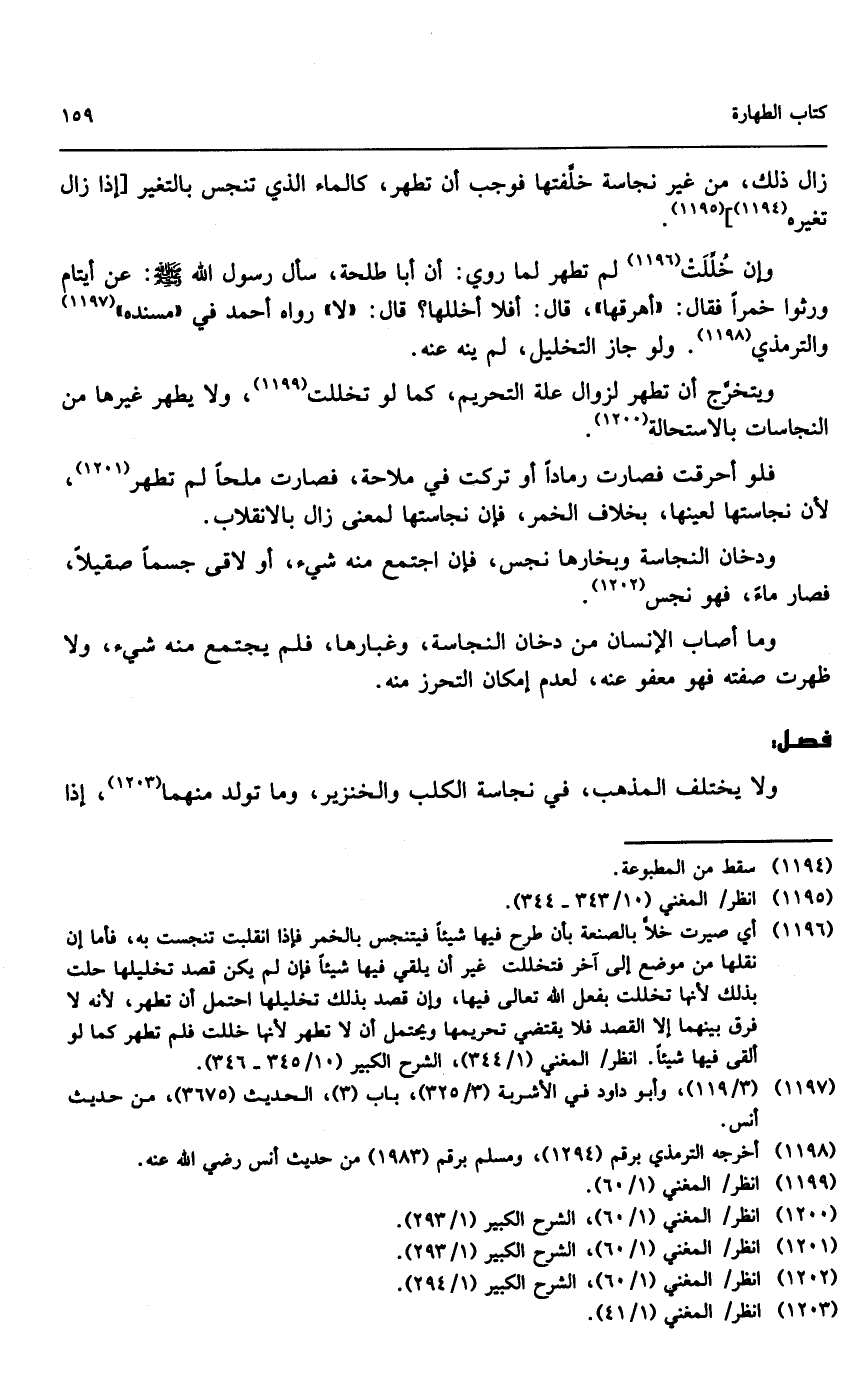 وإن خللت لم تطهر لما روي: «أن أبا طلحة، سأل رسول الله - صَلَّى اللَّهُ عَلَيْهِ وَسَلَّمَ -: عن أيتام ورثوا خمراً فقال: أهرقها، قال: أفلا أخللها؟ قال: لا» ، رواه أحمد في مسنده والترمذي، ولو جاز التخليل، لم ينه عنه، ويتخرج أن تطهر لزوال علة التحريم، كما لو تخللت، ولا يطهر غيرها من النجاسات بالاستحالة، فلو أحرقت فصارت رماداً أو تركت في ملاحة، فصارت ملحاً لم تطهر؛ لأن نجاستها لعينها بخلاف الخمر، فإن نجاستها لمعنى زال بالانقلاب.