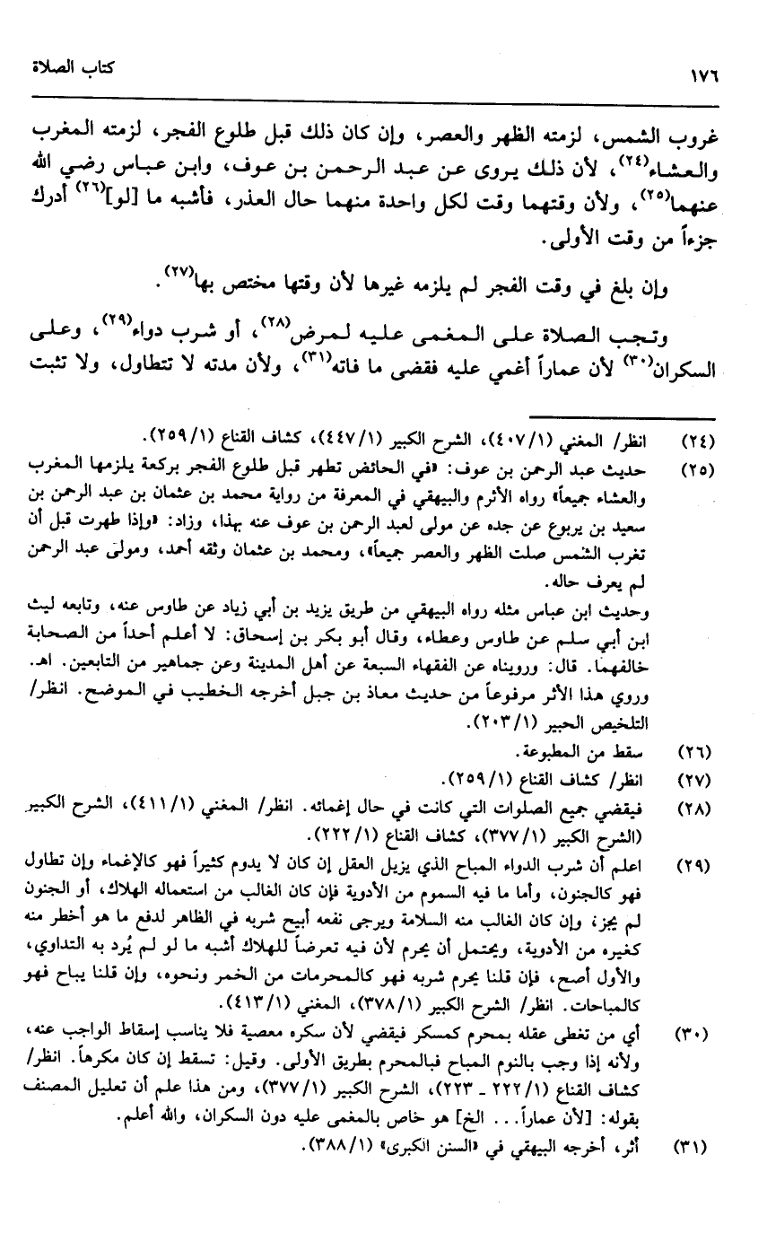 وتجب الصلاة على المغمى عليه لمرض، أو شرب دواء، وعلى السكران؛ لأن عماراً أغمي عليه فقضى ما فاته، ولأن مدته لا تتطاول، ولا تثبت