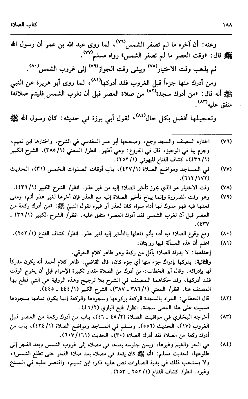 ومن أدرك منها جزءاً قبل الغروب، فقد أدركها، لما روى أبو هريرة عن النبي - صَلَّى اللَّهُ عَلَيْهِ وَسَلَّمَ - أنه قال: «من أدرك سجدة من صلاة العصر قبل أن تغرب الشمس فليتم صلاته» متفق عليه، وتعجيلها أفضل بكل حال، لقول أبي برزة في حديثه: «كان رسول الله - صَلَّى اللَّهُ عَلَيْهِ وَسَلَّمَ -