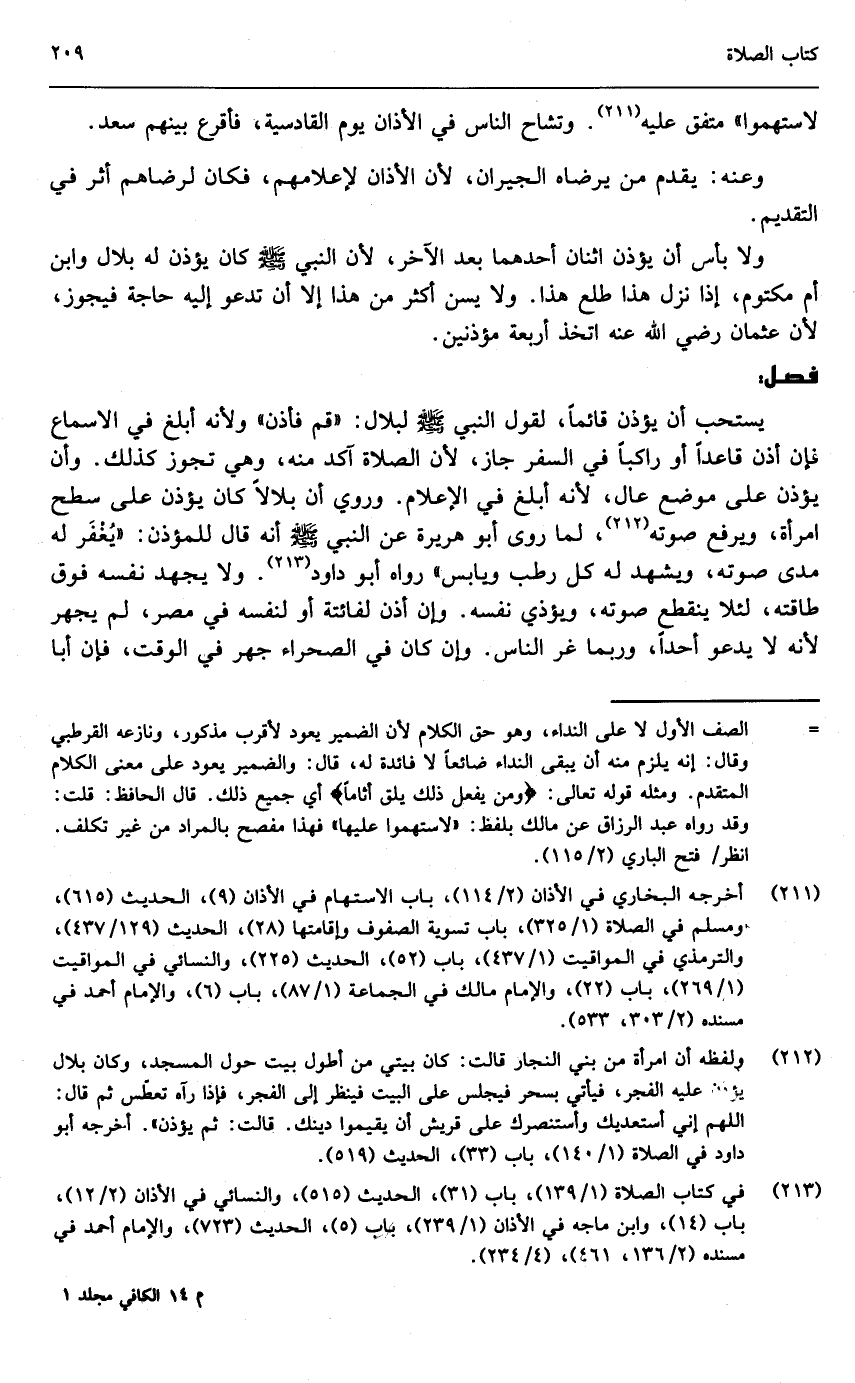 ولا بأس أن يؤذن اثنان أحدهما بعد الآخر، لأن النبي - صَلَّى اللَّهُ عَلَيْهِ وَسَلَّمَ - «كان يؤذن له بلال وابن أم مكتوم، إذا نزل هذا طلع هذا» . ولا يسن أكثر من هذا إلا أن تدعو إليه حاجة فيجوز، لأن عثمان - رَضِيَ اللَّهُ عَنْهُ - اتخذ أربعة مؤذنين.