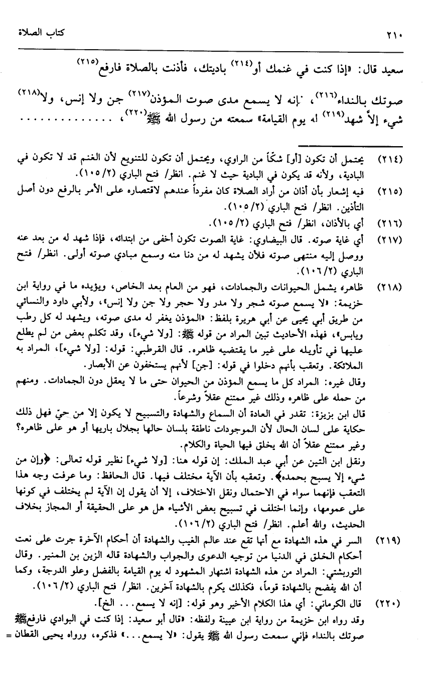 سعيد قال: «إذا كنت في غنمك أو باديتك، فأذنت بالصلاة فارفع صوتك بالنداء، فإنه لا يسمع مدى صوت المؤذن جن ولا أنس ولا شيء، إلا شهد له يوم القيامة سمعته من رسول الله - صَلَّى اللَّهُ عَلَيْهِ وَسَلَّمَ -» ،