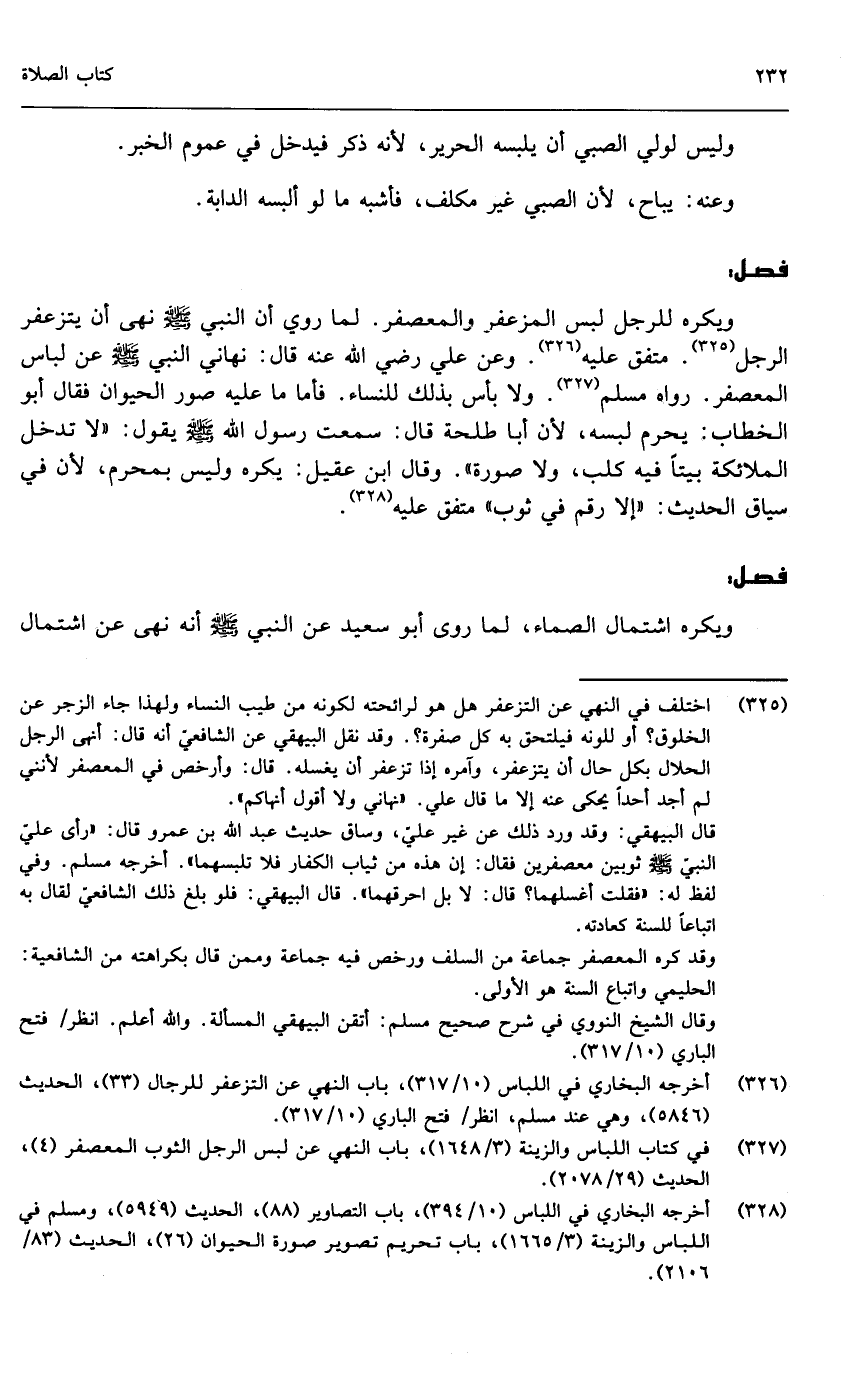 ويكره للرجل لبس المزعفر والمعصفر. لما روي أن النبي - صَلَّى اللَّهُ عَلَيْهِ وَسَلَّمَ - «نهى أن يتزعفر الرجل» . متفق عليه. وعن علي - رَضِيَ اللَّهُ عَنْهُ - قال: «نهاني النبي - صَلَّى اللَّهُ عَلَيْهِ وَسَلَّمَ - عن لباس المعصفر» . رواه مسلم. ولا بأس بذلك للنساء. فأما ما عليه صور الحيوان فقال أبو الخطاب: يحرم لبسه، لأن أبا طلحة قال: سمعت رسول الله - صَلَّى اللَّهُ عَلَيْهِ وَسَلَّمَ - يقول: «لا تدخل الملائكة بيتاً فيه كلب، ولا صورة» . وقال ابن عقيل: يكره وليس بمحرم، لأن في سياق الحديث: «إلا رقم في ثوب» متفق عليه.