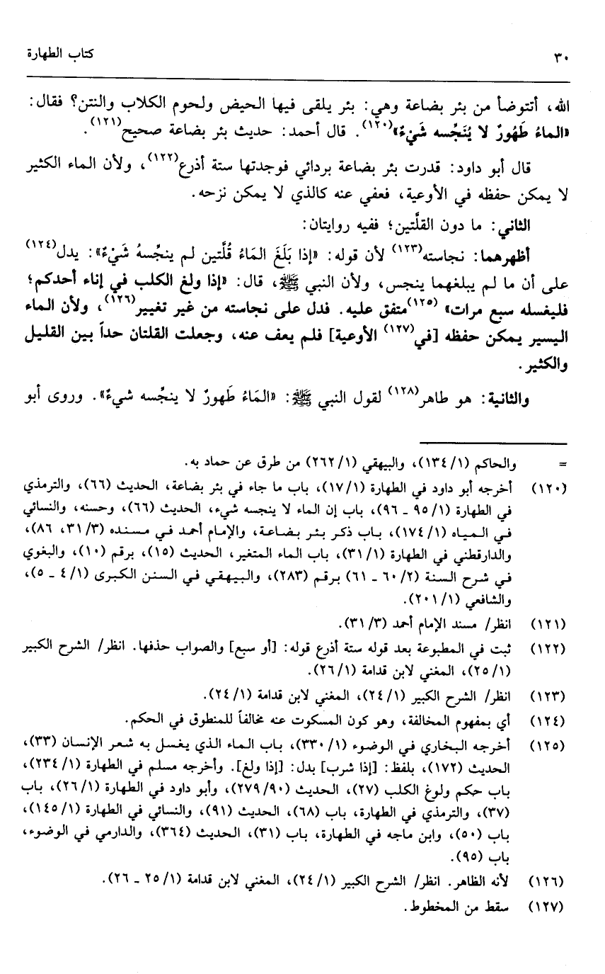 قال أبو داود: قدرت بئر بضاعة بردائي فوجدتها ستة أذرع، ولأن الماء الكثير لا يمكن حفظه في الأوعية، فعفي عنه كالذي لا يمكن نزحه.
