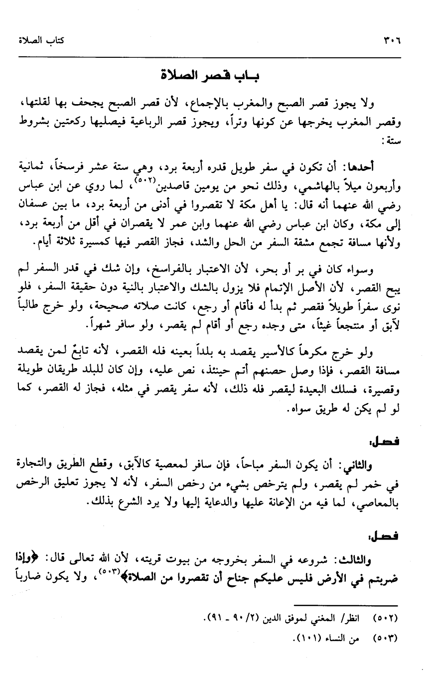 وسواء كان في بر أو بحر؛ لأن الاعتبار بالفراسخ، وإن شك في قدر السفر لم يبح القصر؛ لأن الأصل الإتمام، فلا يزول بالشك والاعتبار بالنية دون حقيقة السفر، فلو نوى سفرًا طويلًا، فقصر ثم بدأ له فأقام أو رجع، كانت صلاته صحيحة، ولو خرج طالبًا لآبق أو منتجعًا غيثًا، متى وجده رجع أو أقام لم يقصر، ولو سافر شهرًا.