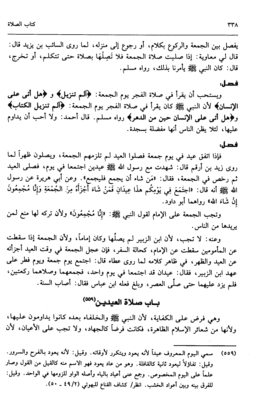 ويستحب أن يقرأ في صلاة الفجر يوم الجمعة: {الم - تَنْزِيلُ} [السجدة: 1 - 2] و {هَلْ أَتَى عَلَى الإِنْسَانِ} [الإنسان: 1] «لأن النبي - صَلَّى اللَّهُ عَلَيْهِ وَسَلَّمَ - كان يقرأ في صلاة الفجر يوم الجمعة: {الم - تَنْزِيلُ الْكِتَابِ} [السجدة: 1 - 2] و {هَلْ أَتَى عَلَى الإِنْسَانِ حِينٌ مِنَ الدَّهْرِ} [الإنسان: 1] » رواه مسلم. قال أحمد: ولا أحب أن يداوم عليها، لئلا يظن الناس أنها مفضلة بسجدة.