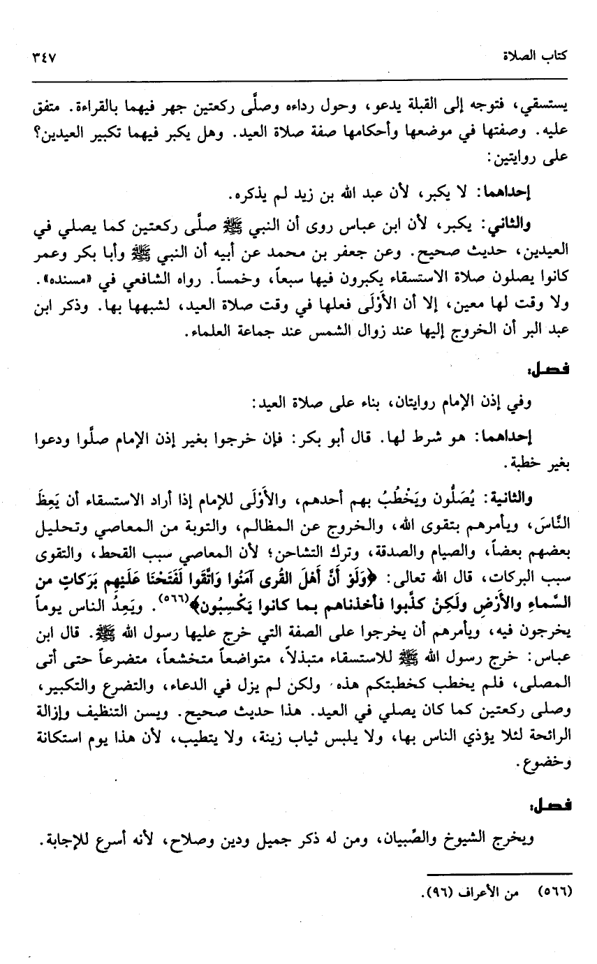 والثاني: يكبر؛ لأن ابن عباس روى «أن النبي - صَلَّى اللَّهُ عَلَيْهِ وَسَلَّمَ - صلى ركعتين كما يصلي في العيدين» ، حديث صحيح. وعن جعفر بن محمد عن أبيه «أن النبي - صَلَّى اللَّهُ عَلَيْهِ وَسَلَّمَ - وأبا بكر وعمر كانوا يصلون صلاة الاستسقاء يكبرون فيها سبعاً، وخمساً» . رواه الشافعي في " مسنده ". ولا وقت لها معين، إلا أن الأولى فعلها في وقت صلاة العيد، لشبهها بها. وذكر ابن عبد البر أن الخروج إليها عند زوال الشمس عند جماعة العلماء.