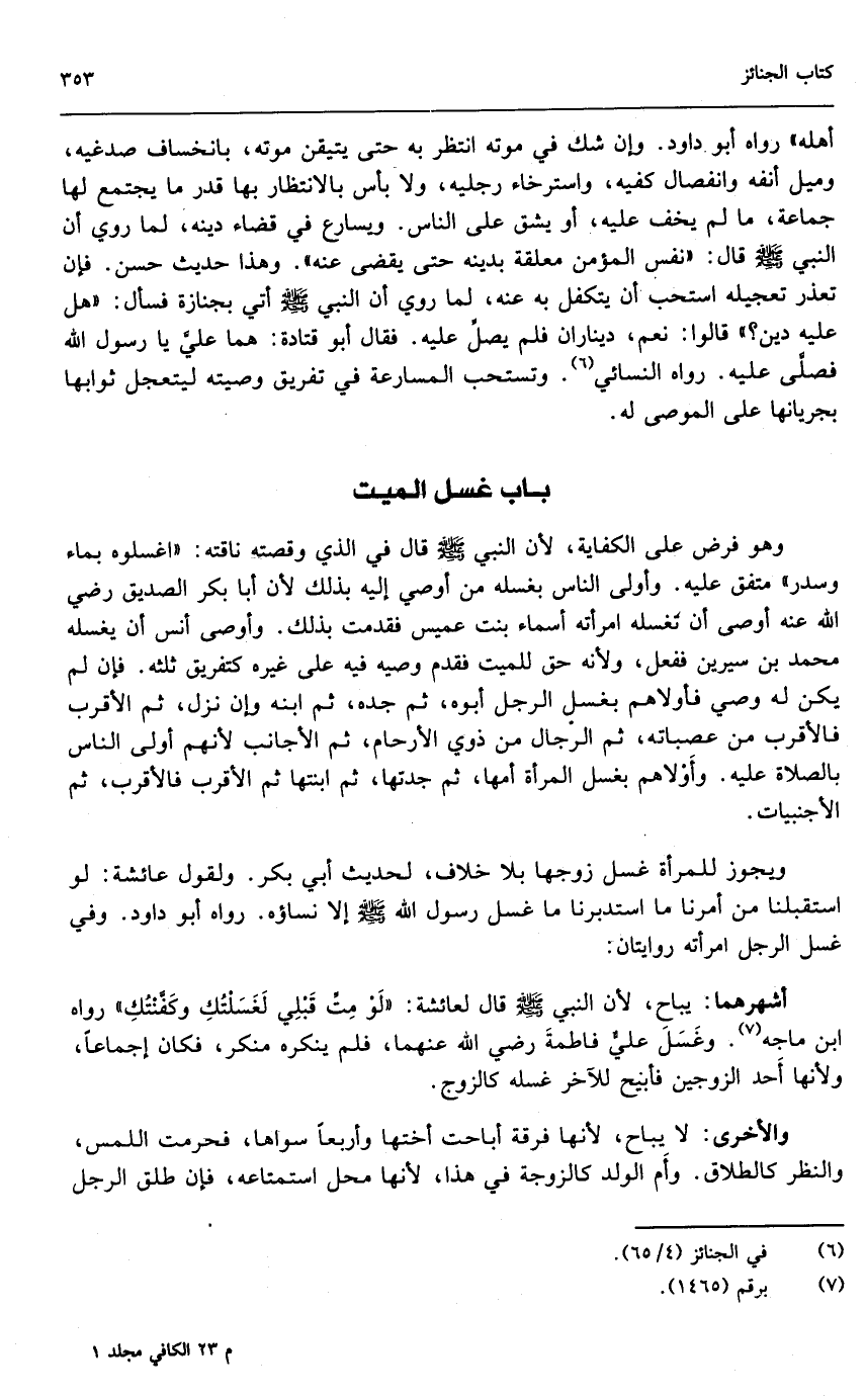 أهله» رواه أبو داود. وإن شك في موته انتظر به حتى يتيقن موته، بانخساف صدغيه، وميل أنفه وانفصال كفيه، واسترخاء رجليه، ولا بأس بالانتظار بها قدر ما يجتمع لها جماعة، ما لم يخف عليه، أو يشق على الناس. ويسارع في قضاء دينه، لما روي أن النبي - صَلَّى اللَّهُ عَلَيْهِ وَسَلَّمَ - قال: «نفس المؤمن معلقة بدينه حتى يقضى عنه» وهذا حديث حسن. فإن تعذر تعجيله استحب أن يتكفل به عنه، لما روي «أن النبي - صَلَّى اللَّهُ عَلَيْهِ وَسَلَّمَ - أتي بجنازة فسأل: هل عليه دين؟ قالوا: نعم، ديناران فلم يصل عليه. فقال أبو قتادة: هما علي يا رسول الله فصلى عليه» . رواه النسائي. وتستحب المسارعة في تفريق وصيته ليتعجل ثوابها بجريانها على الموصى له.