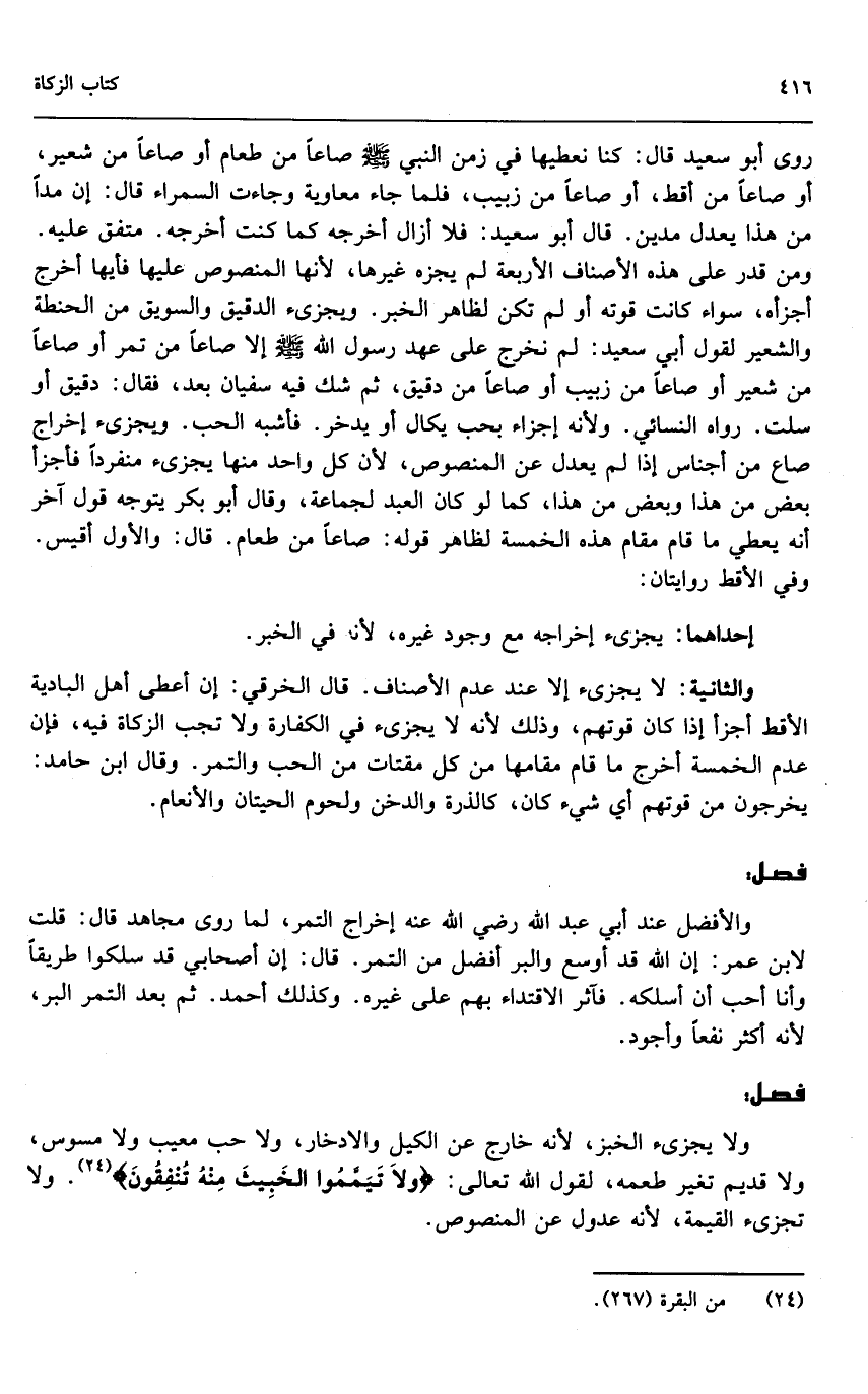 والأفضل عن أبي عبد الله - رَضِيَ اللَّهُ عَنْهُ - إخراج التمر. لما روى مجاهد قال: قلت لابن عمر: إن الله قد أوسع والبر أفضل من التمر. قال: إن أصحابي قد سلكوا طريقاً وأنا أحب أن أسلكه، فآثر الاقتداء بهم على غيره. وكذلك أحمد. ثم بعد التمر البر؛ لأنه أكثر نفعاً وأجود.