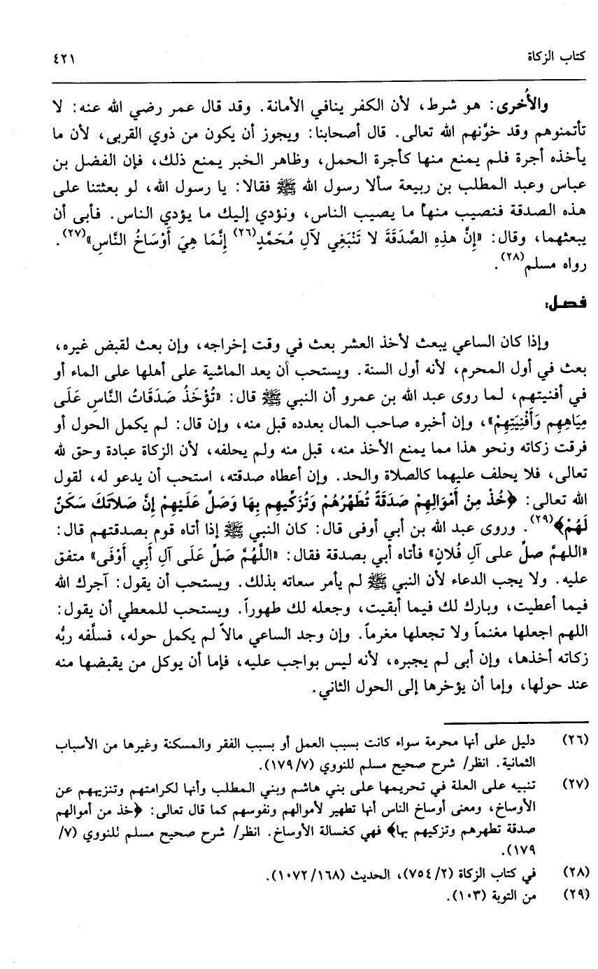 والأخرى: هو شرط؛ لأن الكفر ينافي الأمانة. وقد قال عمر - رَضِيَ اللَّهُ عَنْهُ -: لا تأتمنوهم وقد خونهم الله تعالى. قال أصحابنا: وجوز أن يكون من ذوي القربى؛ لأن ما يأخذه أجرة فلم يمنع منها كأجرة الحمل، وظاهر الخبر يمنع ذلك، فإن «الفضل بن عباس وعبد المطلب بن ربيعة سألا رسول الله - صَلَّى اللَّهُ عَلَيْهِ وَسَلَّمَ - فقالا: يا رسول الله، لو بعثتنا على هذه الصدقة فنصيب منها ما يصيب الناس، ونؤدي إليك ما يؤدي الناس. فأبى أن يبعثهما، وقال: إن هذه الصدقة لا تنبغي لآل محمد إنما هي أوساخ الناس» رواه مسلم.