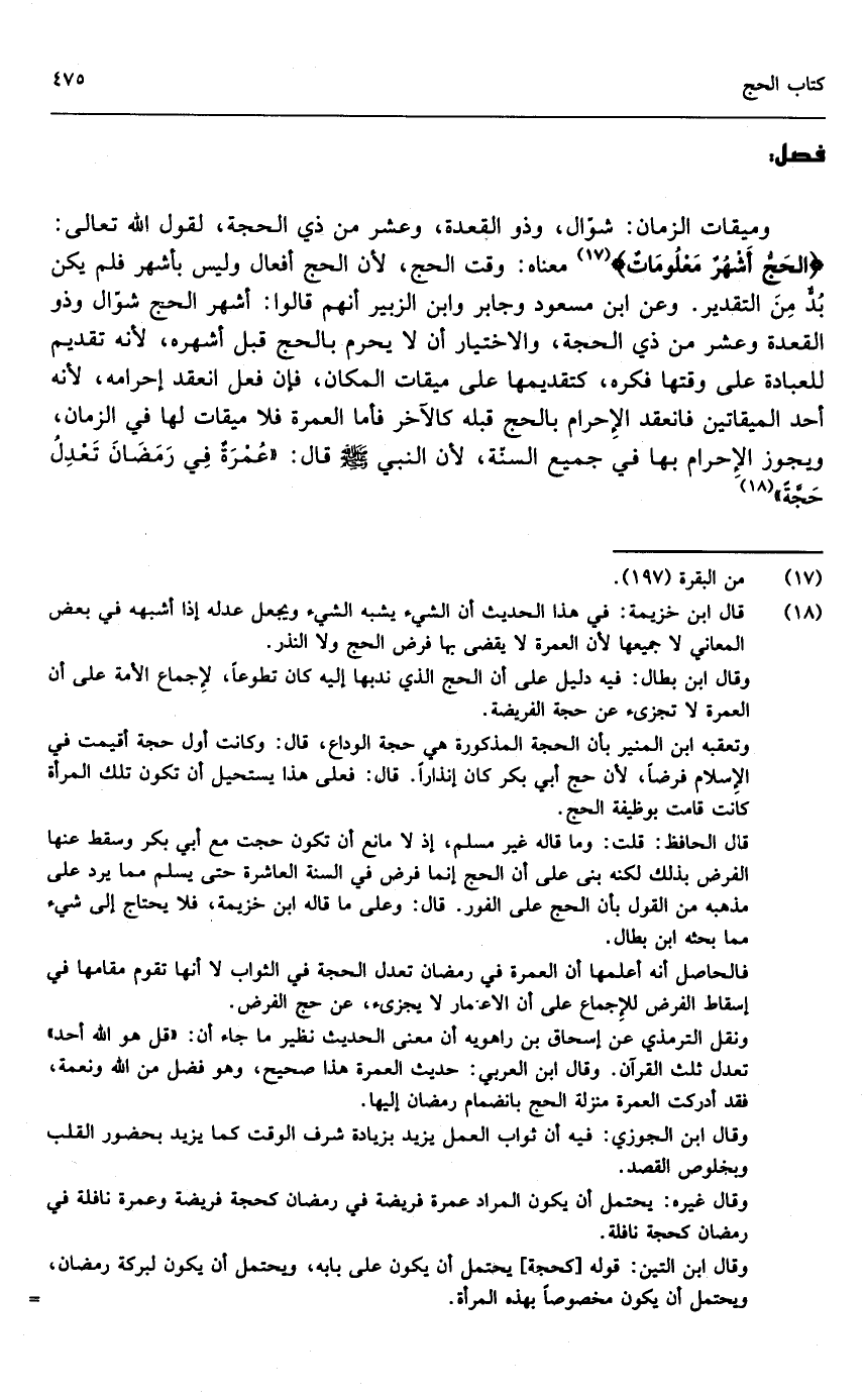 وميقات الزمان: شوال، وذو القعدة، وعشر من ذي الحجة؛ لقول الله تعالى: {الْحَجُّ أَشْهُرٌ مَعْلُومَاتٌ} [البقرة: 197] معناه: وقت الحج؛ لأن الحج أفعال وليس بأشهر فلم يكن بد من التقدير. وعن ابن مسعود وجابر وابن الزبير أنهم قالوا: أشهر الحج شوال وذو القعدة وعشر من ذي الحجة، والاختيار أن لا يحرم بالحج قبل أشهره؛ لأنه تقديم للعبادة على وقتها فكره، كتقديمها على ميقات المكان، فإن فعل انعقد إحرامه؛ لأنه أحد الميقاتين فانعقد الإحرام بالحج قبله كالآخر، فأما العمرة فلا ميقات لها في الزمان، ويجوز الإحرام بها في جميع السنة؛ لأن النبي - صَلَّى اللَّهُ عَلَيْهِ وَسَلَّمَ - قال: «عمرة في رمضان تعدل حجة.»